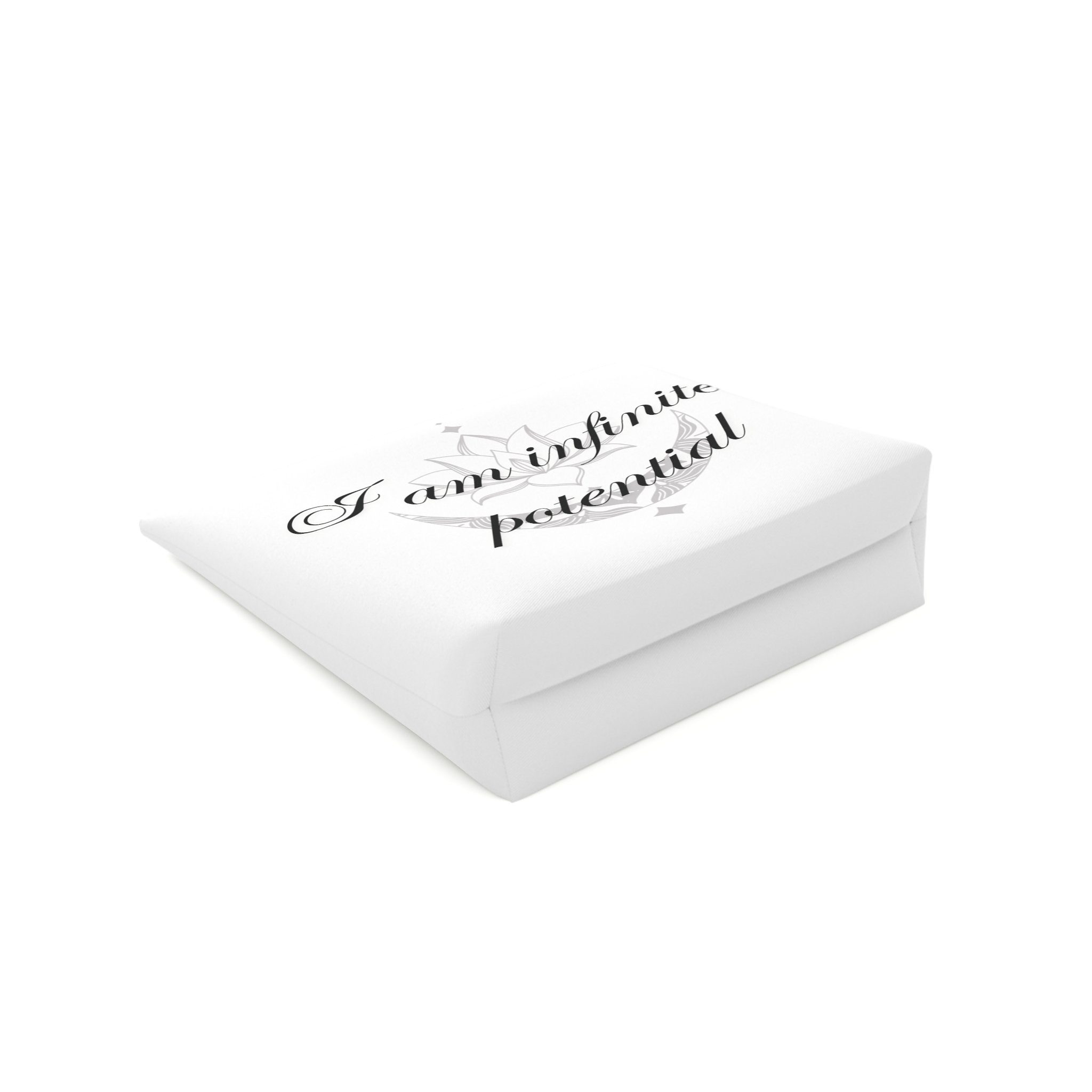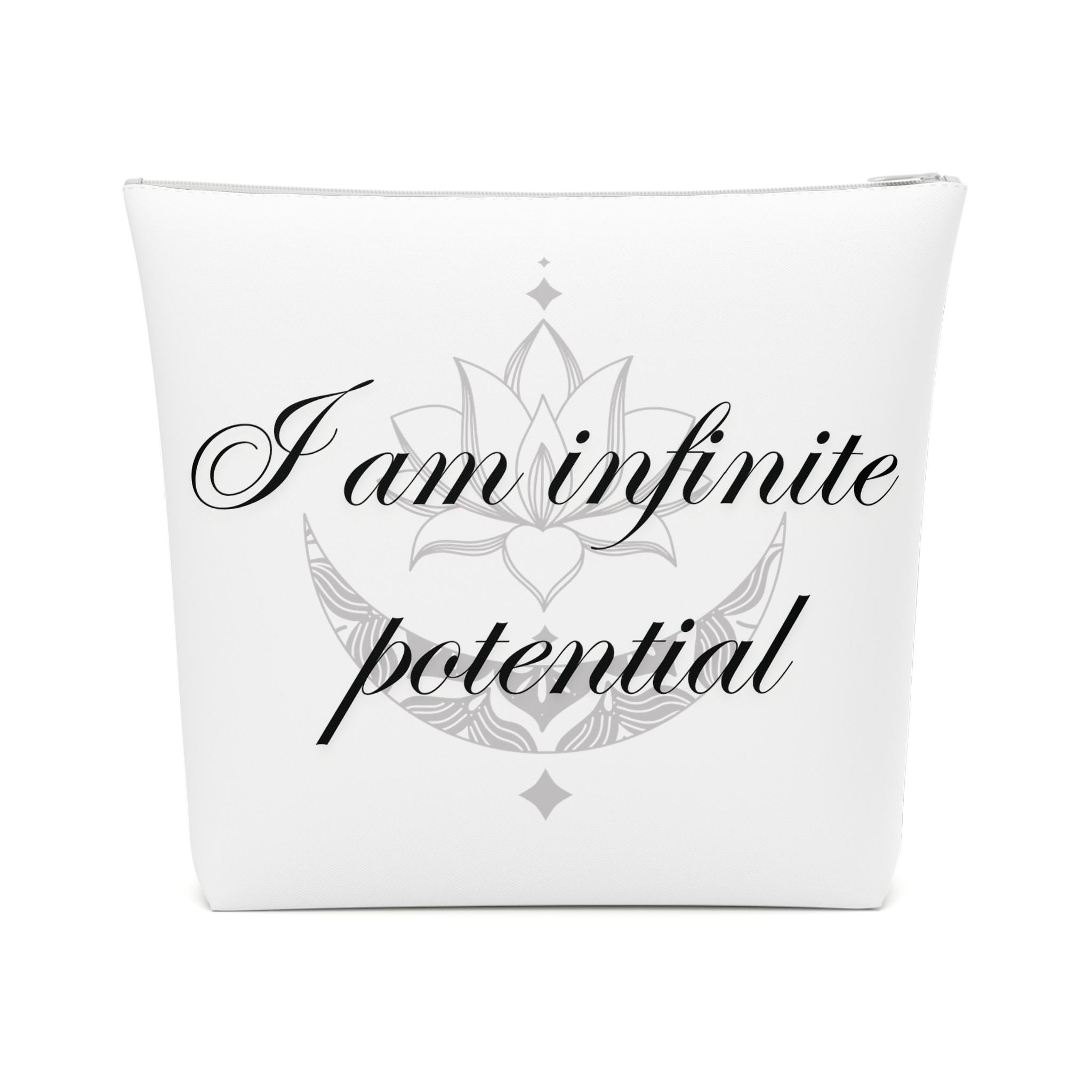 Astuccio porta make-up in drill di cotone 100%. Realizzata al 100% in cotone drill, questa pochette non solo è bella, ecologica e ispirazionale, ma può anche resistere ai viaggi costanti e all’uso quotidiano. “I am Infinite Potential”