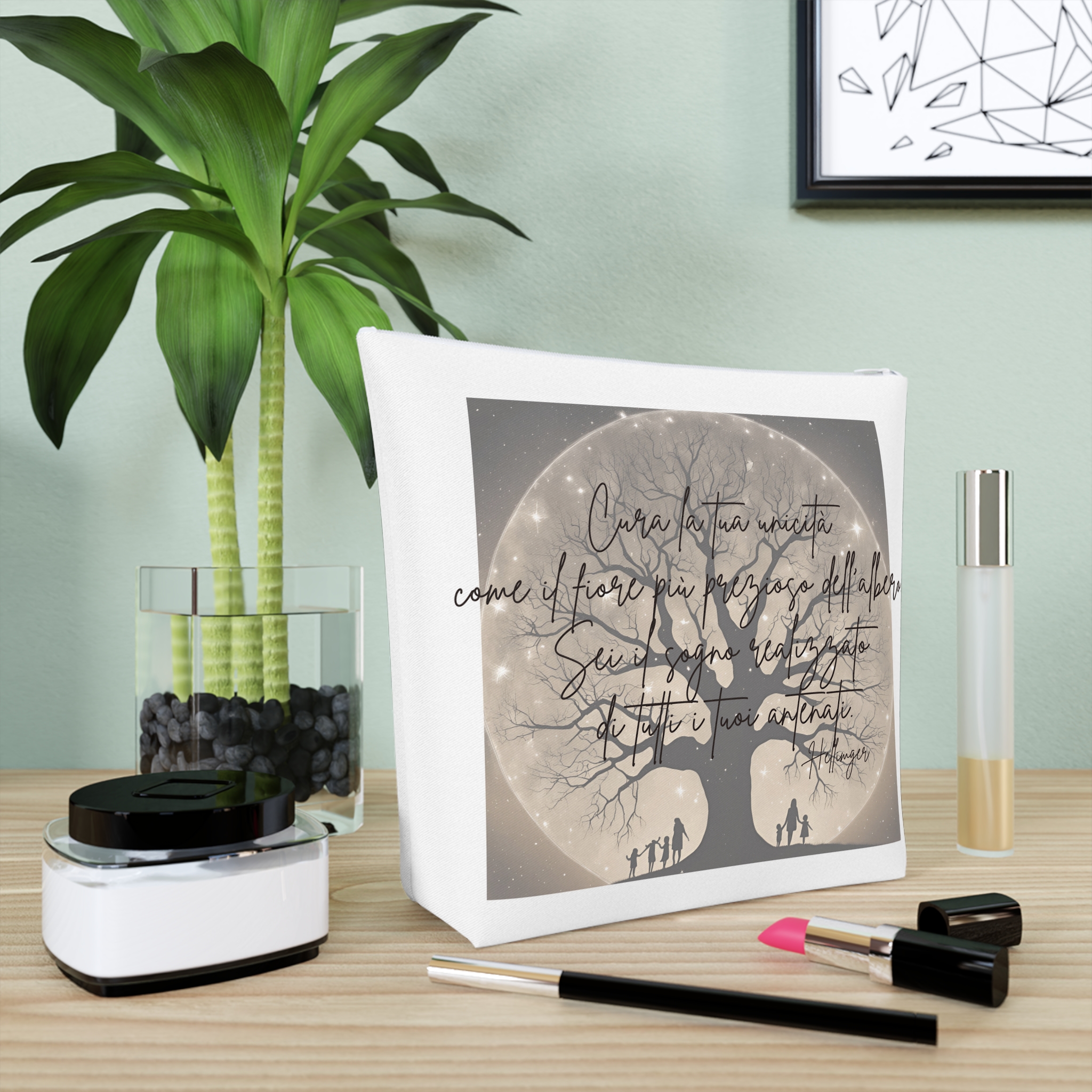 Astuccio porta make-up in drill di cotone 100%. Realizzata al 100% in cotone drill, questa pochette non solo è bella, ecologica e ispirazionale, ma può anche resistere ai viaggi costanti e all’uso quotidiano.
