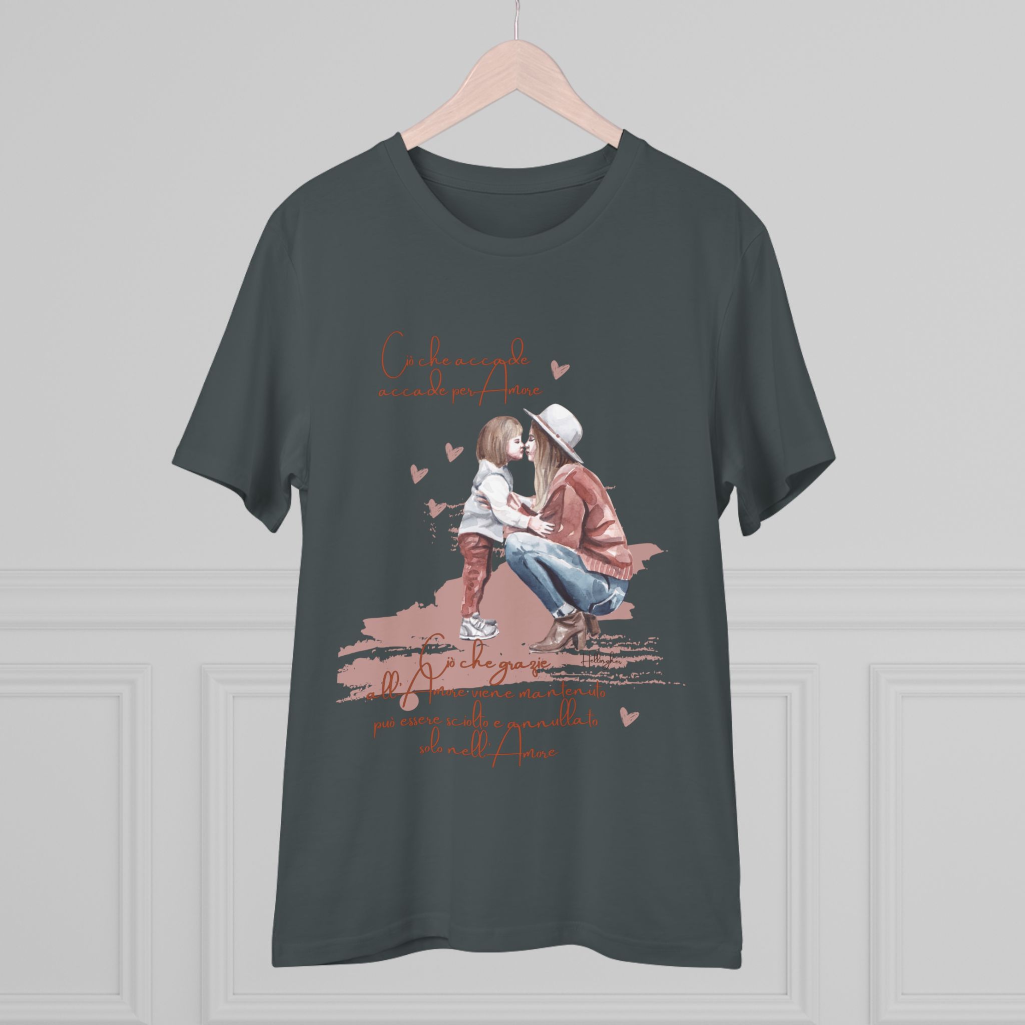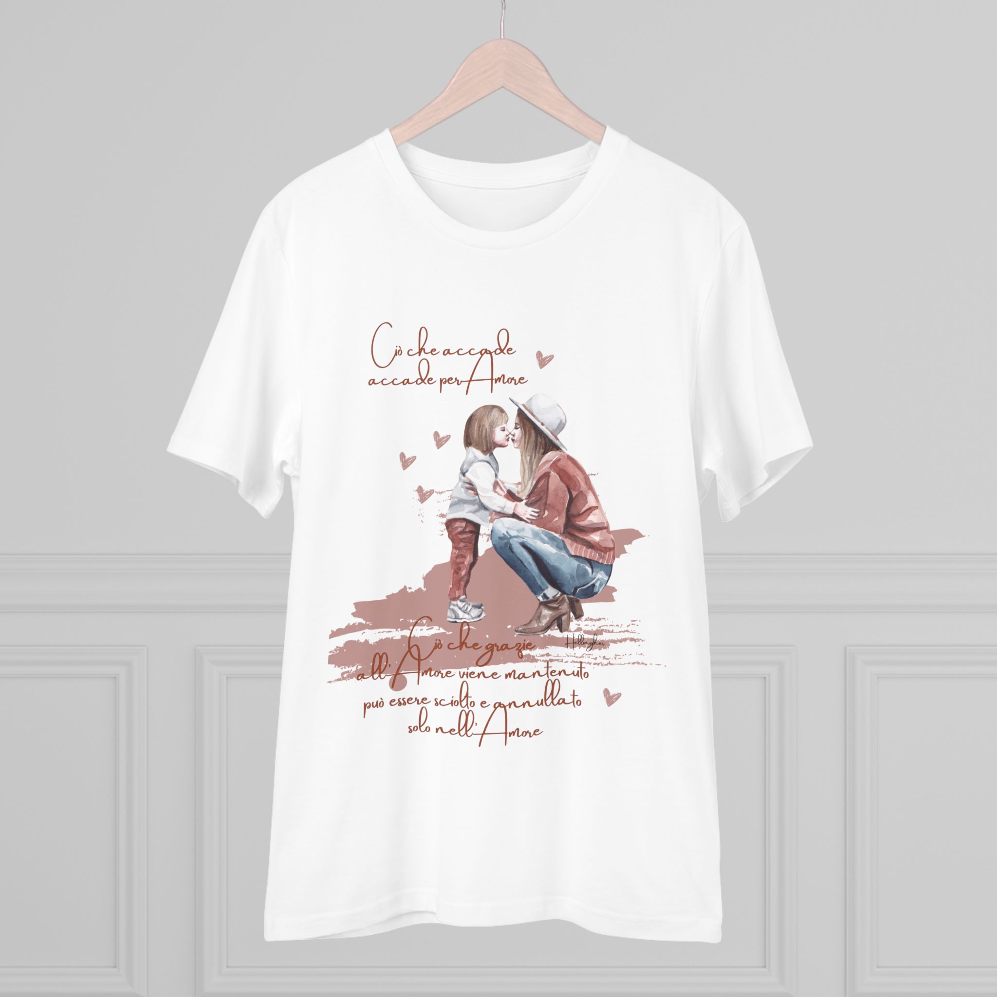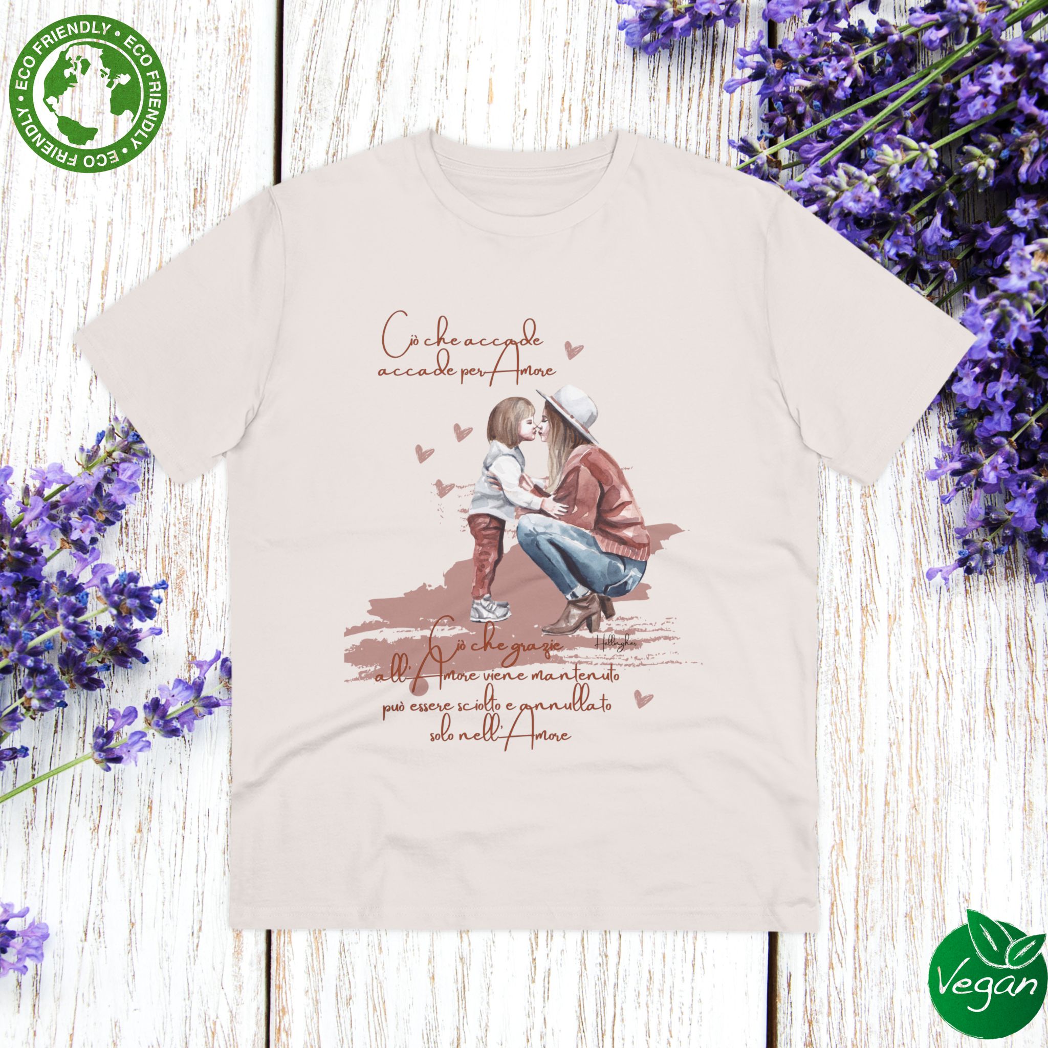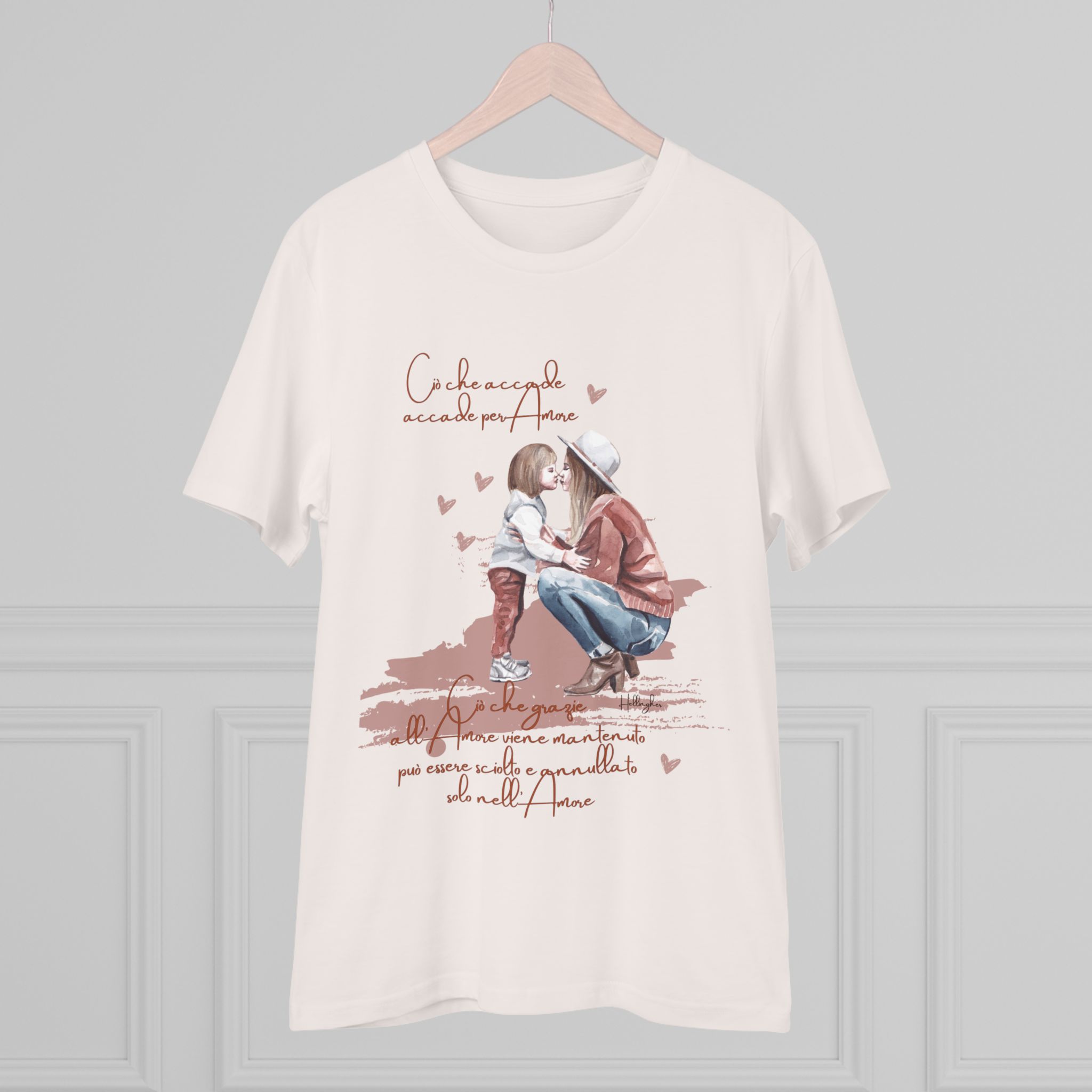 100%cotone, organico,vegan. “Ciò che accade, accade per amore. Ciò che grazie all’amore viene mantenuto può essere sciolto e annullato solo nell’Amore” ispirata alle Costellazioni Familiari di Hellinger.