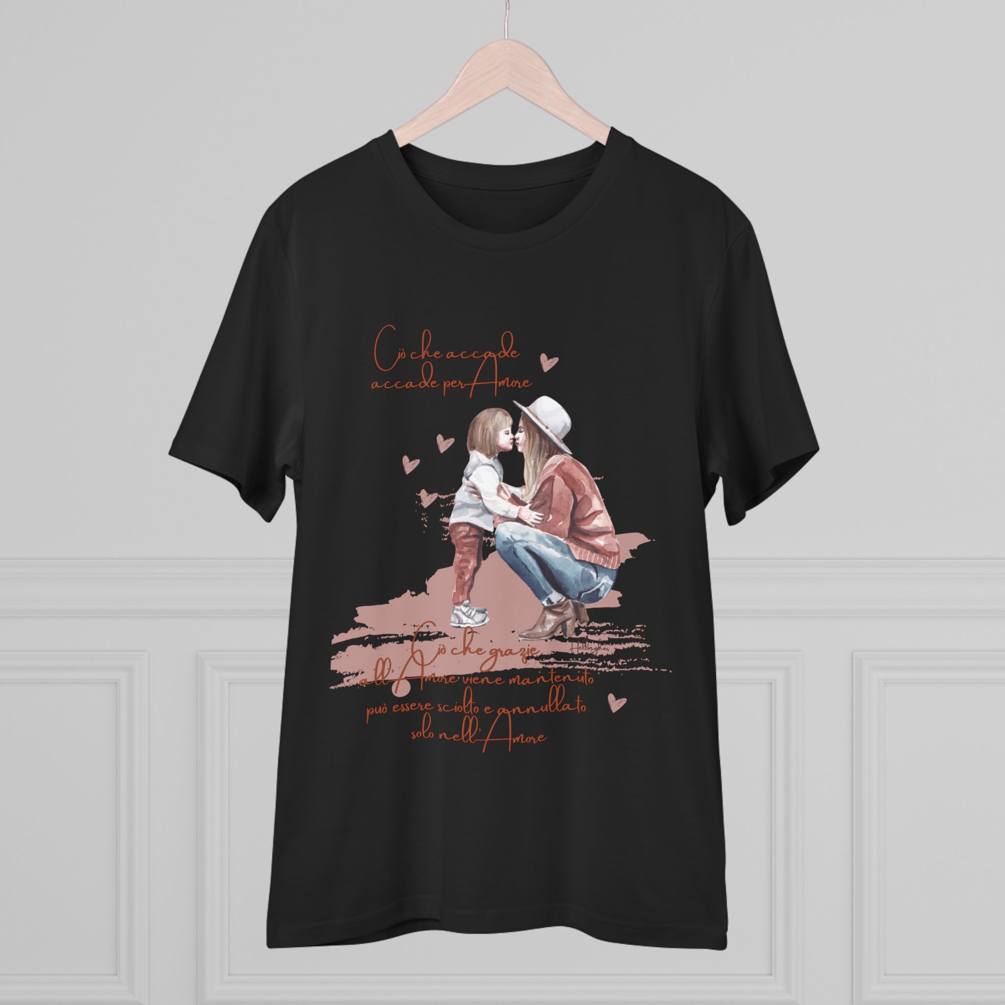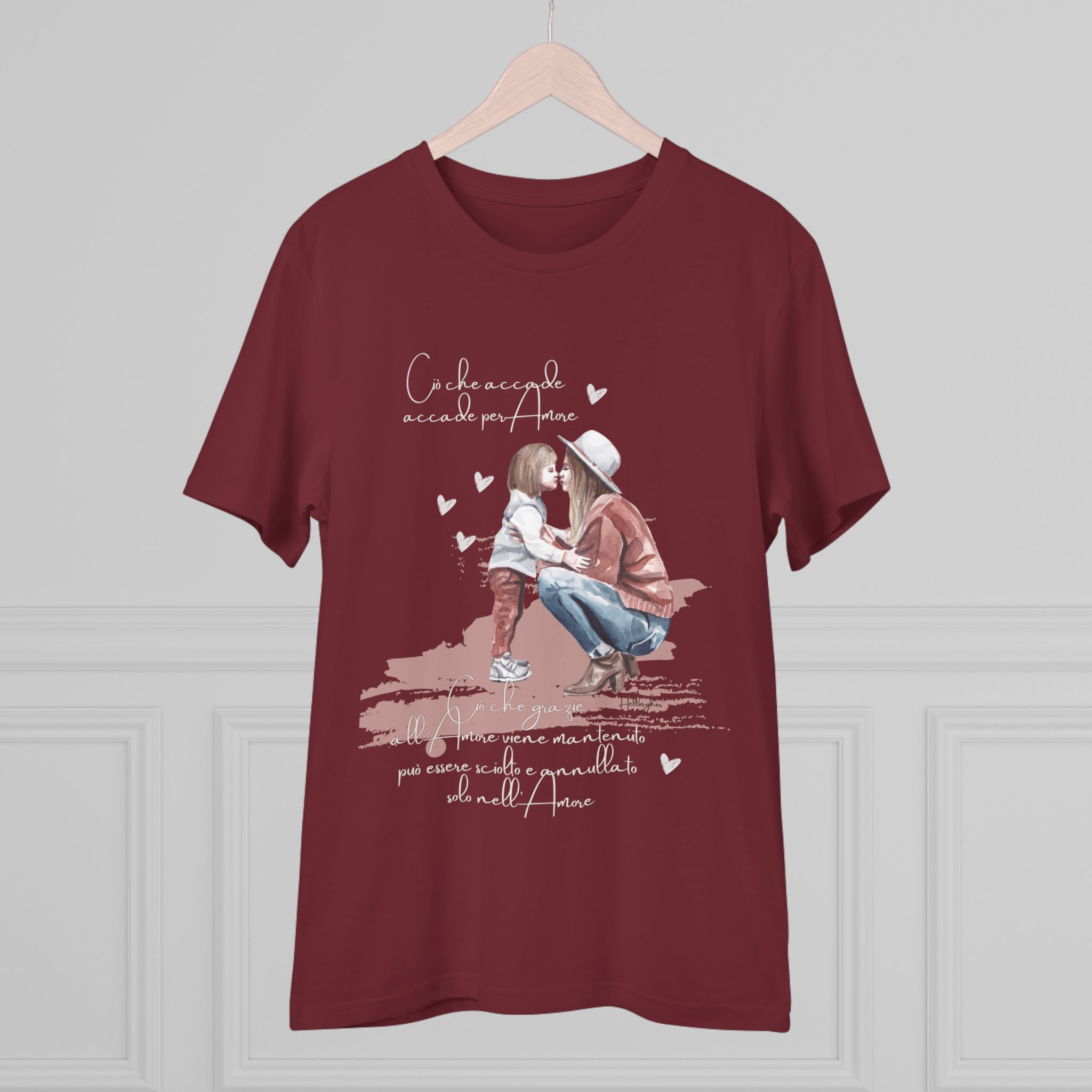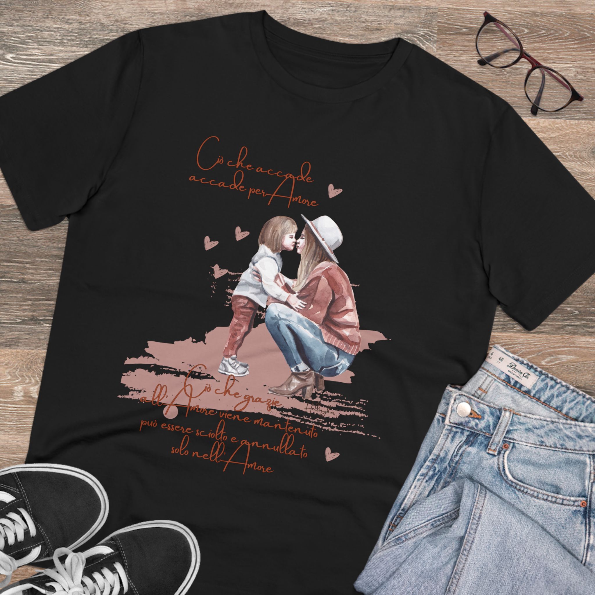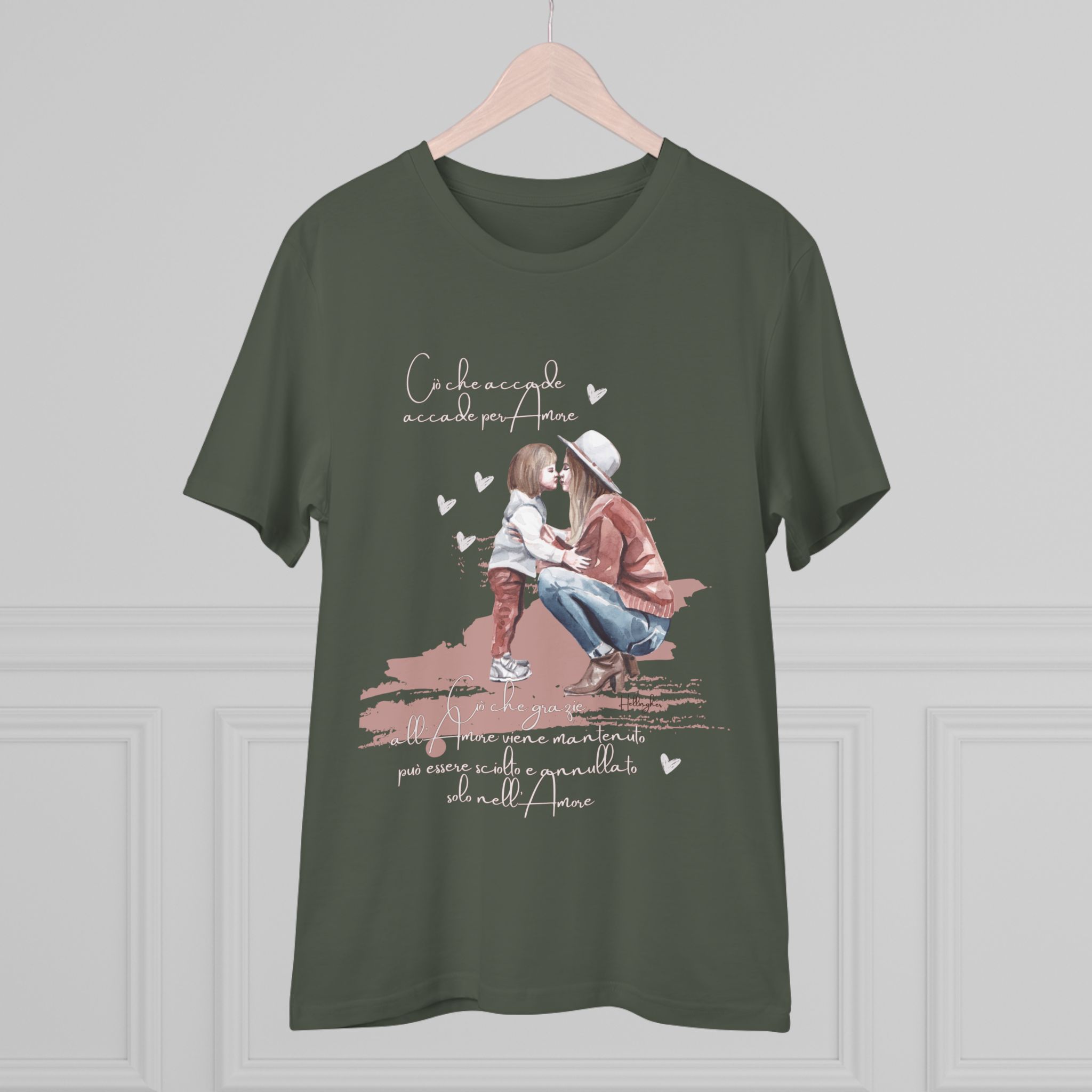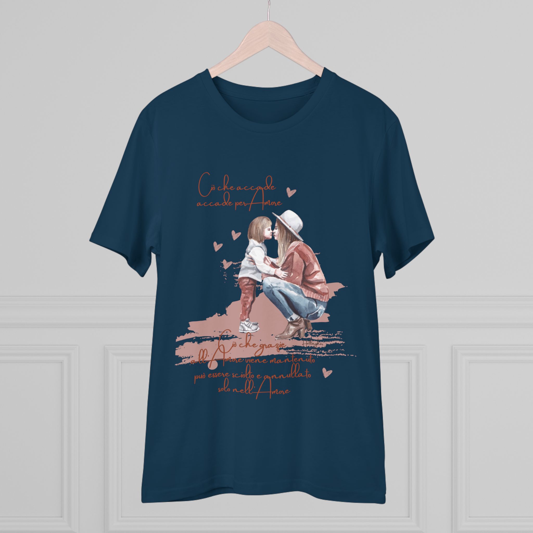 100%cotone, organico,vegan. “Ciò che accade, accade per amore. Ciò che grazie all’amore viene mantenuto può essere sciolto e annullato solo nell’Amore” ispirata alle Costellazioni Familiari di Hellinger.