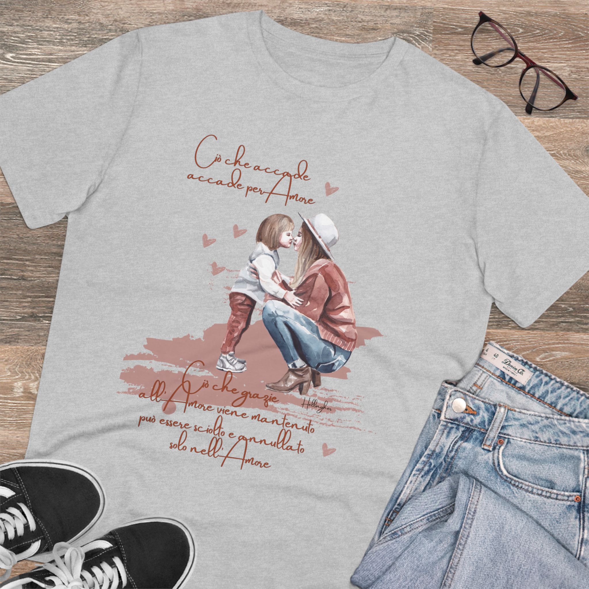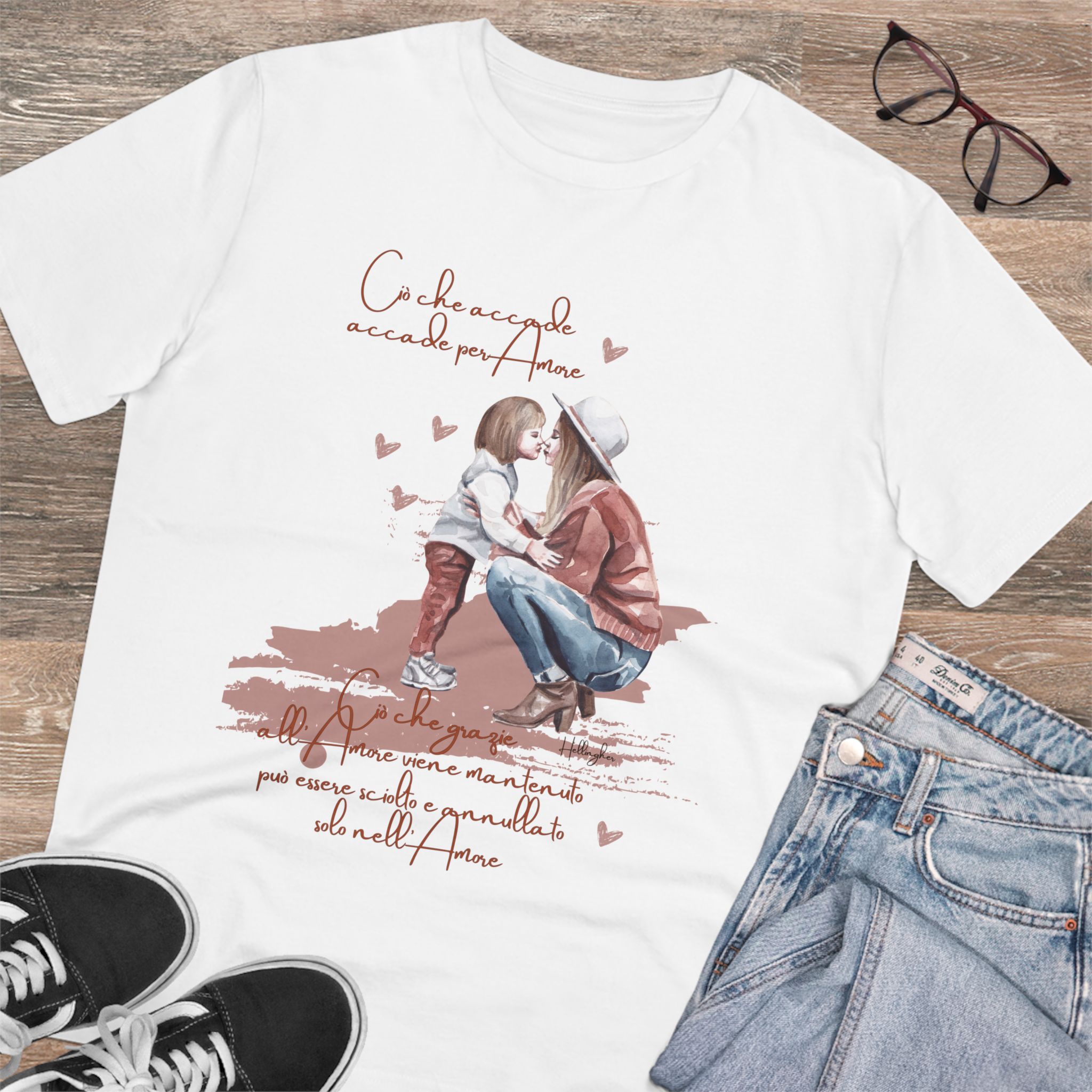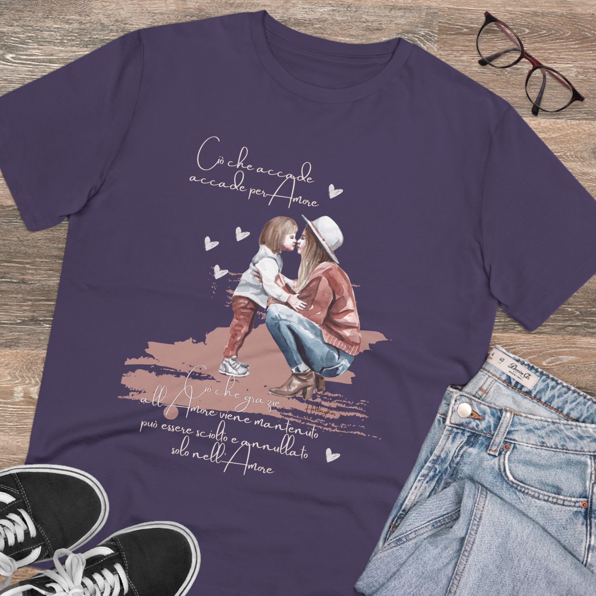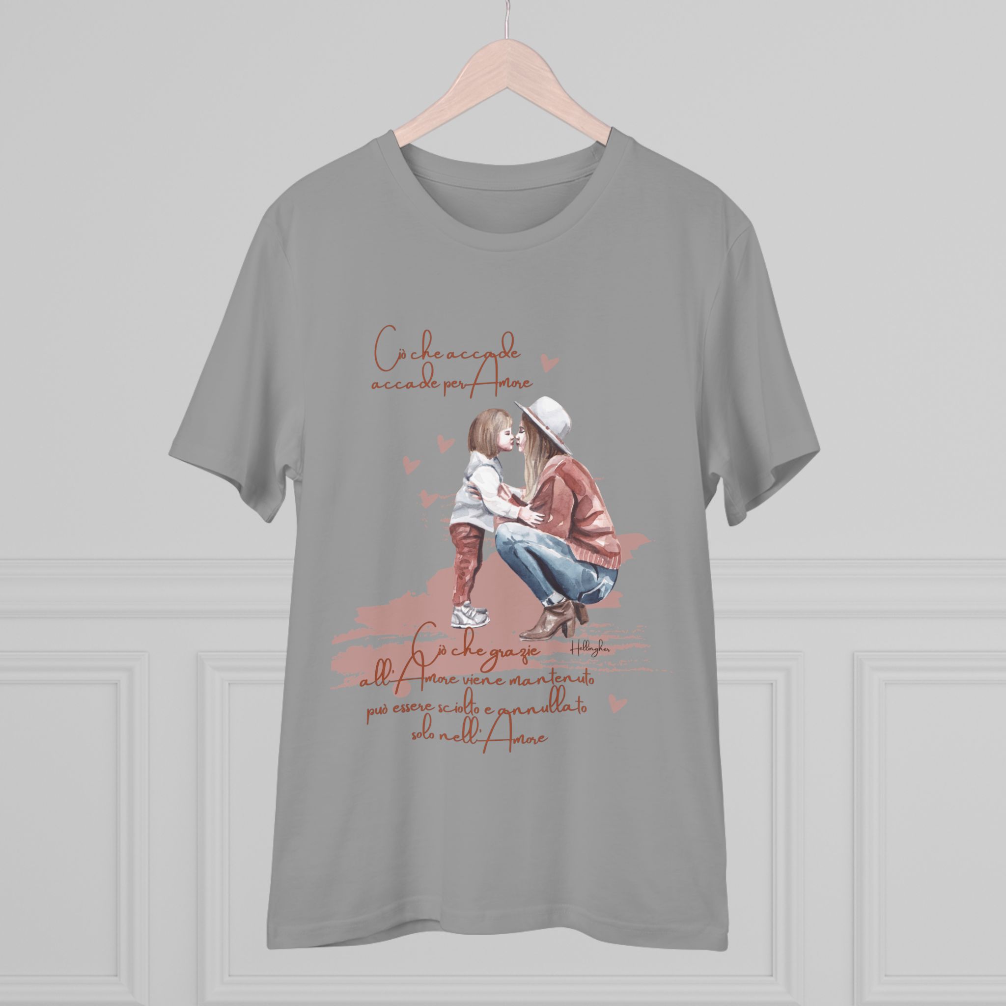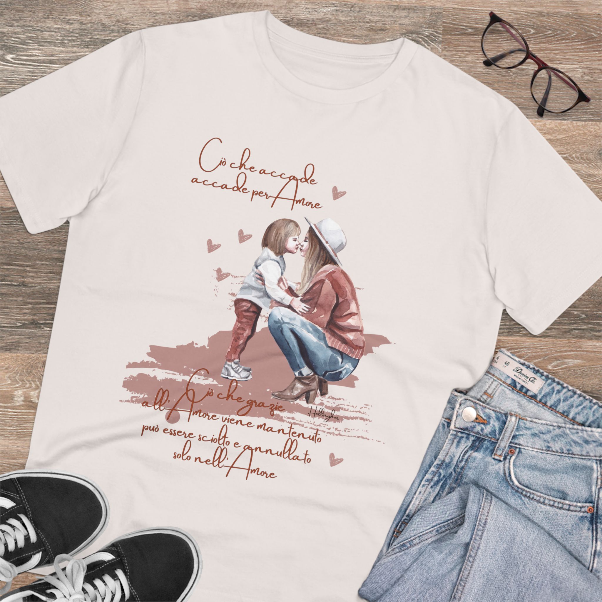 100%cotone, organico,vegan. “Ciò che accade, accade per amore. Ciò che grazie all’amore viene mantenuto può essere sciolto e annullato solo nell’Amore” ispirata alle Costellazioni Familiari di Hellinger.
