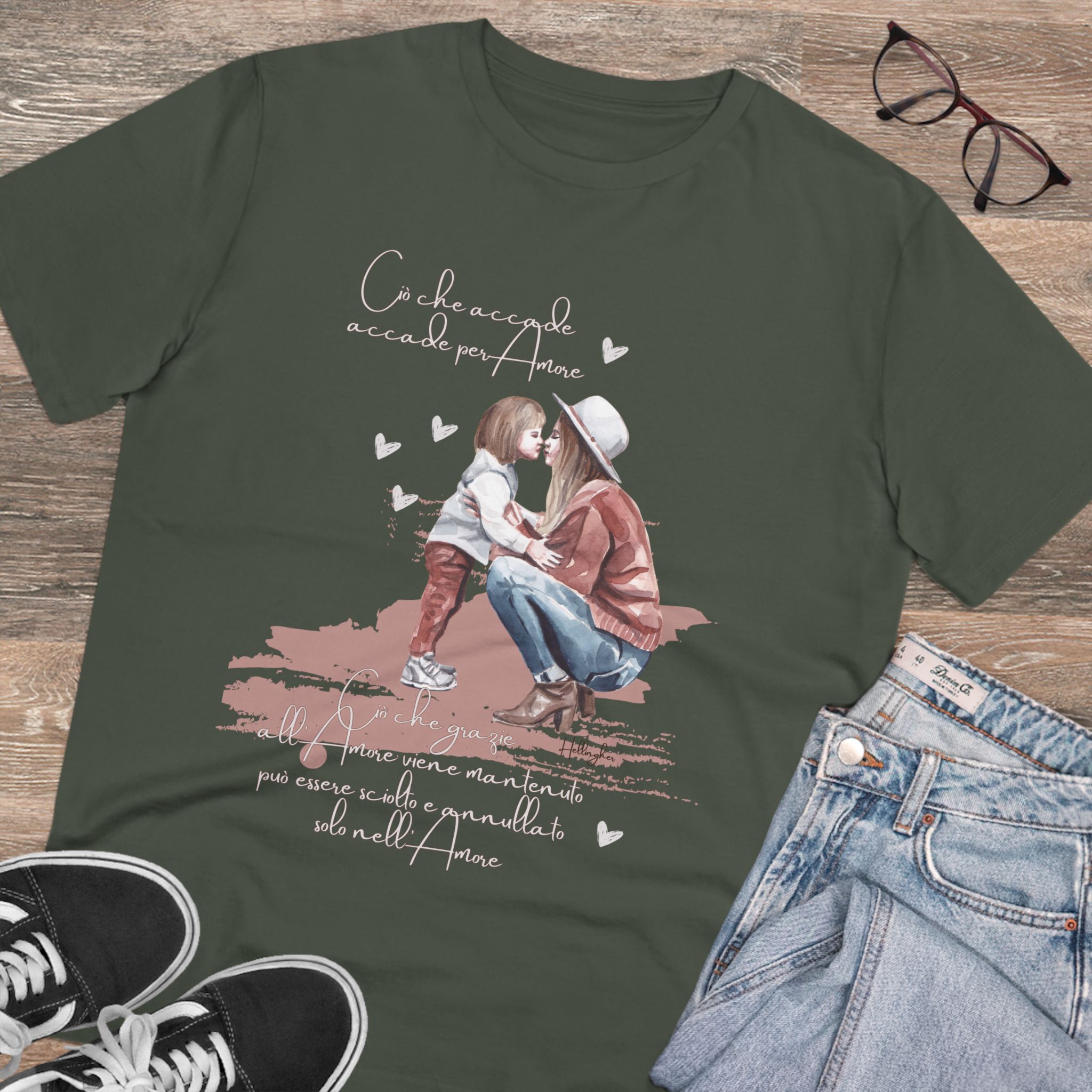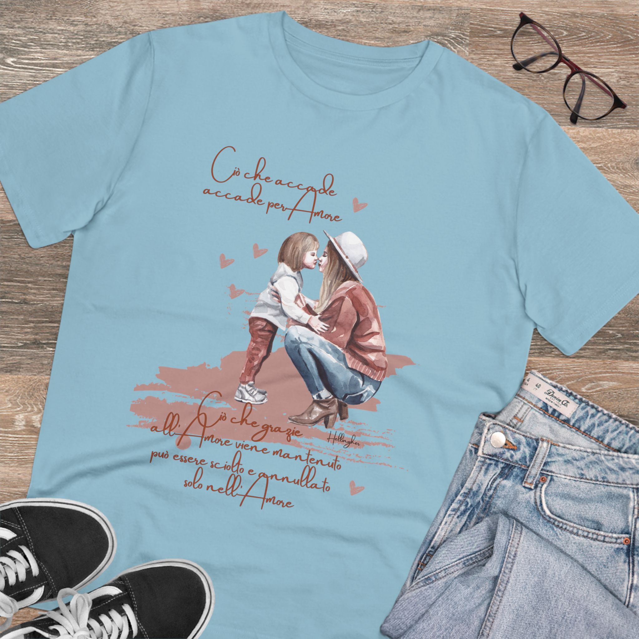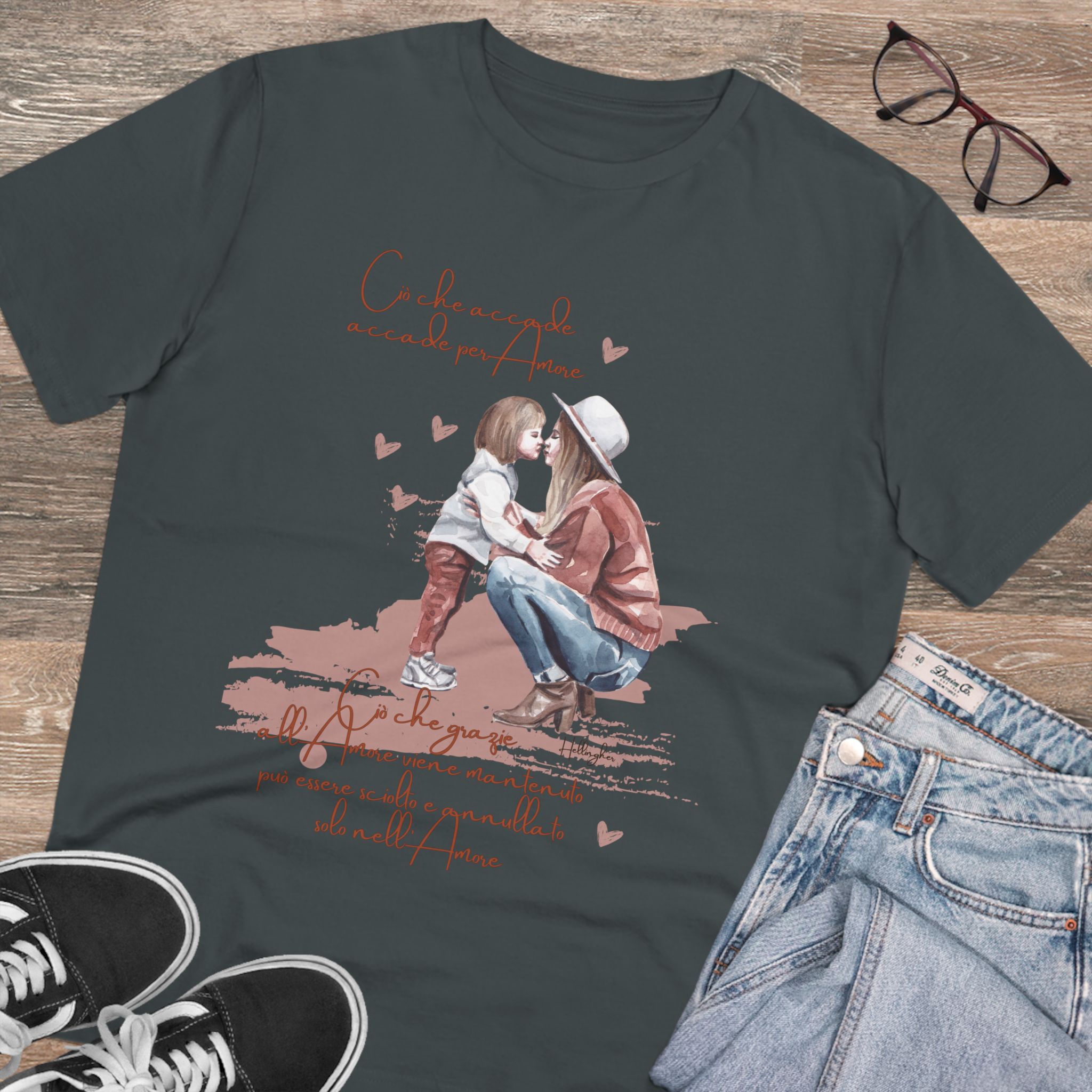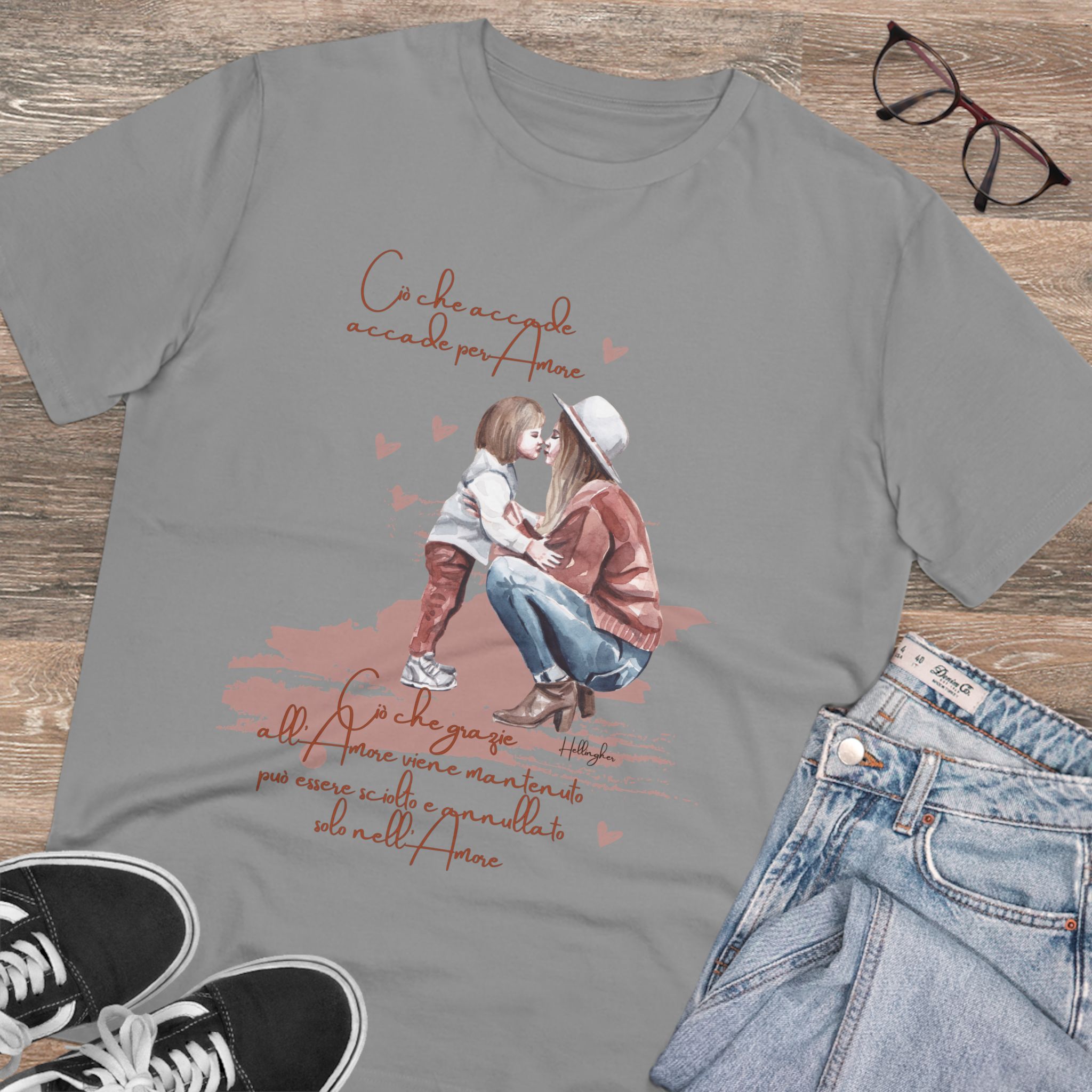 100%cotone, organico,vegan. “Ciò che accade, accade per amore. Ciò che grazie all’amore viene mantenuto può essere sciolto e annullato solo nell’Amore” ispirata alle Costellazioni Familiari di Hellinger.