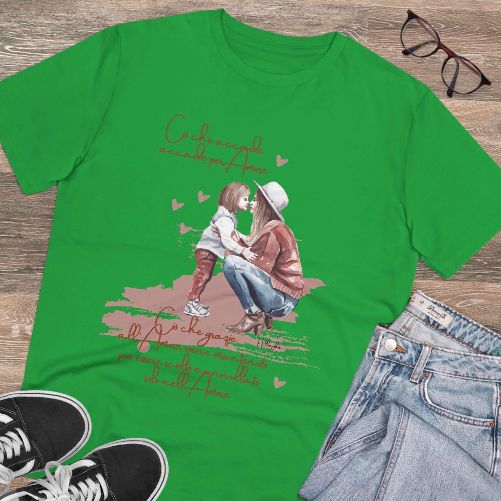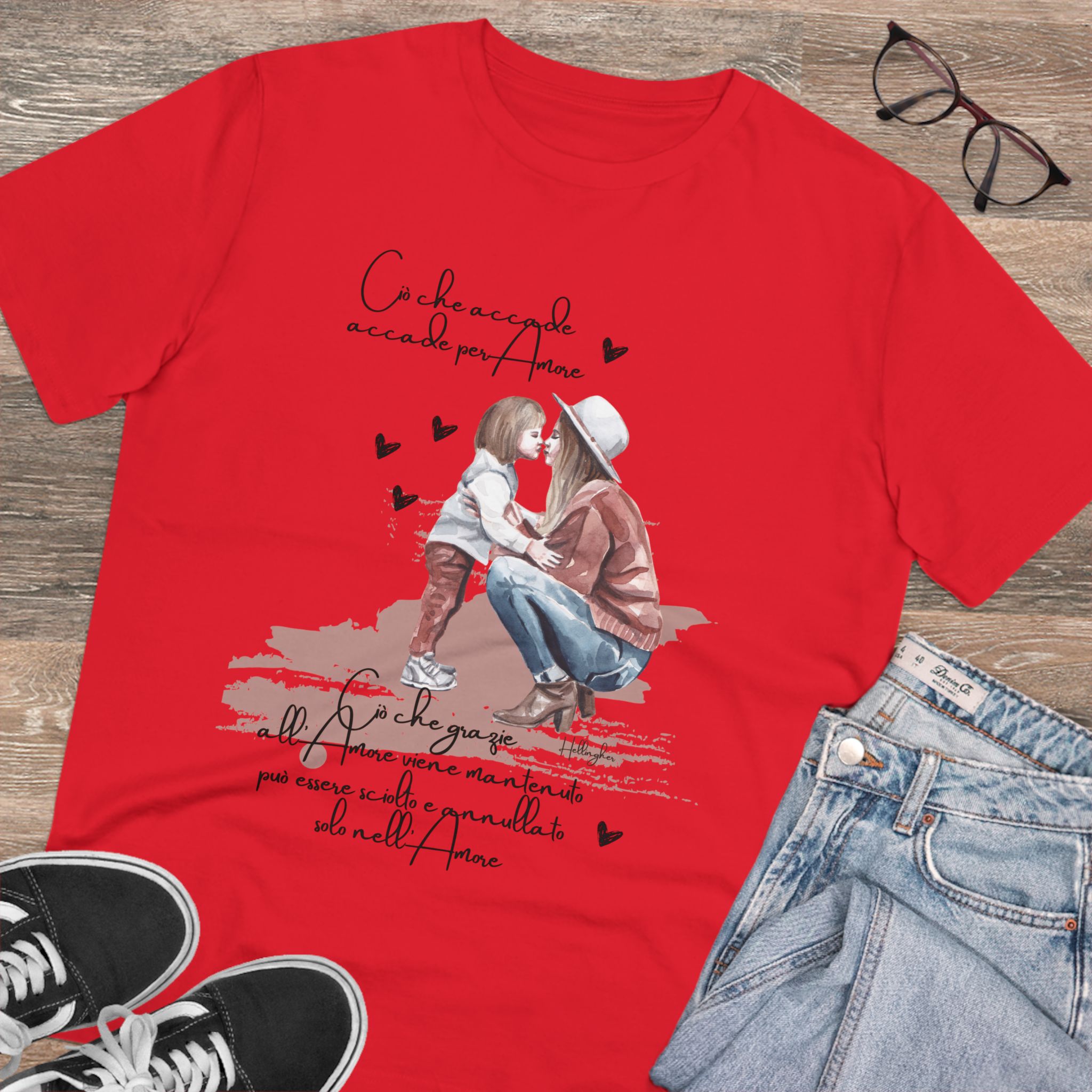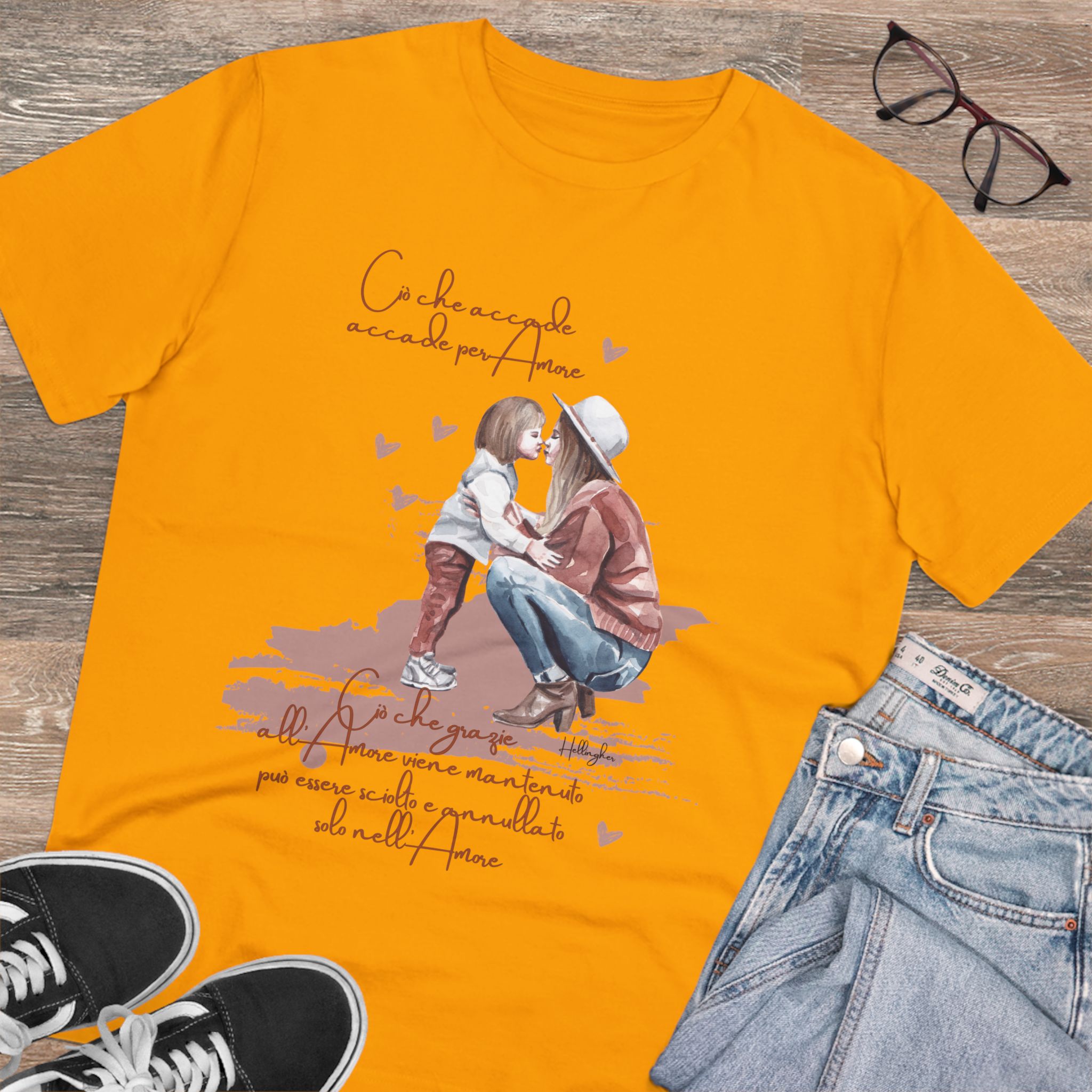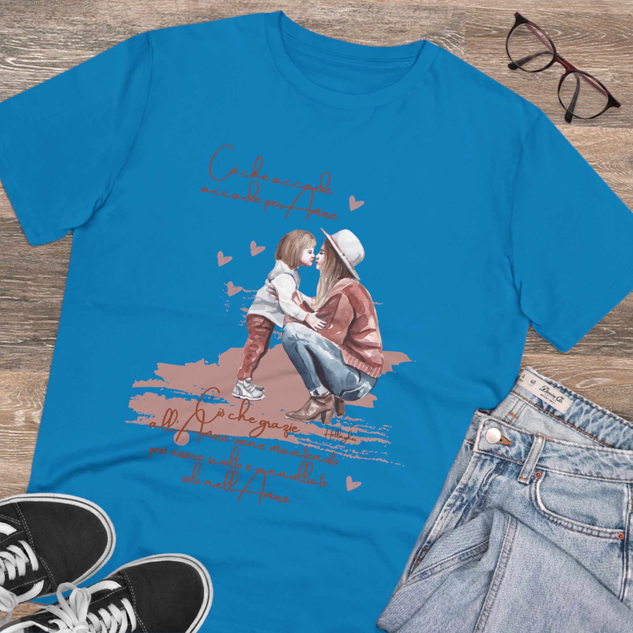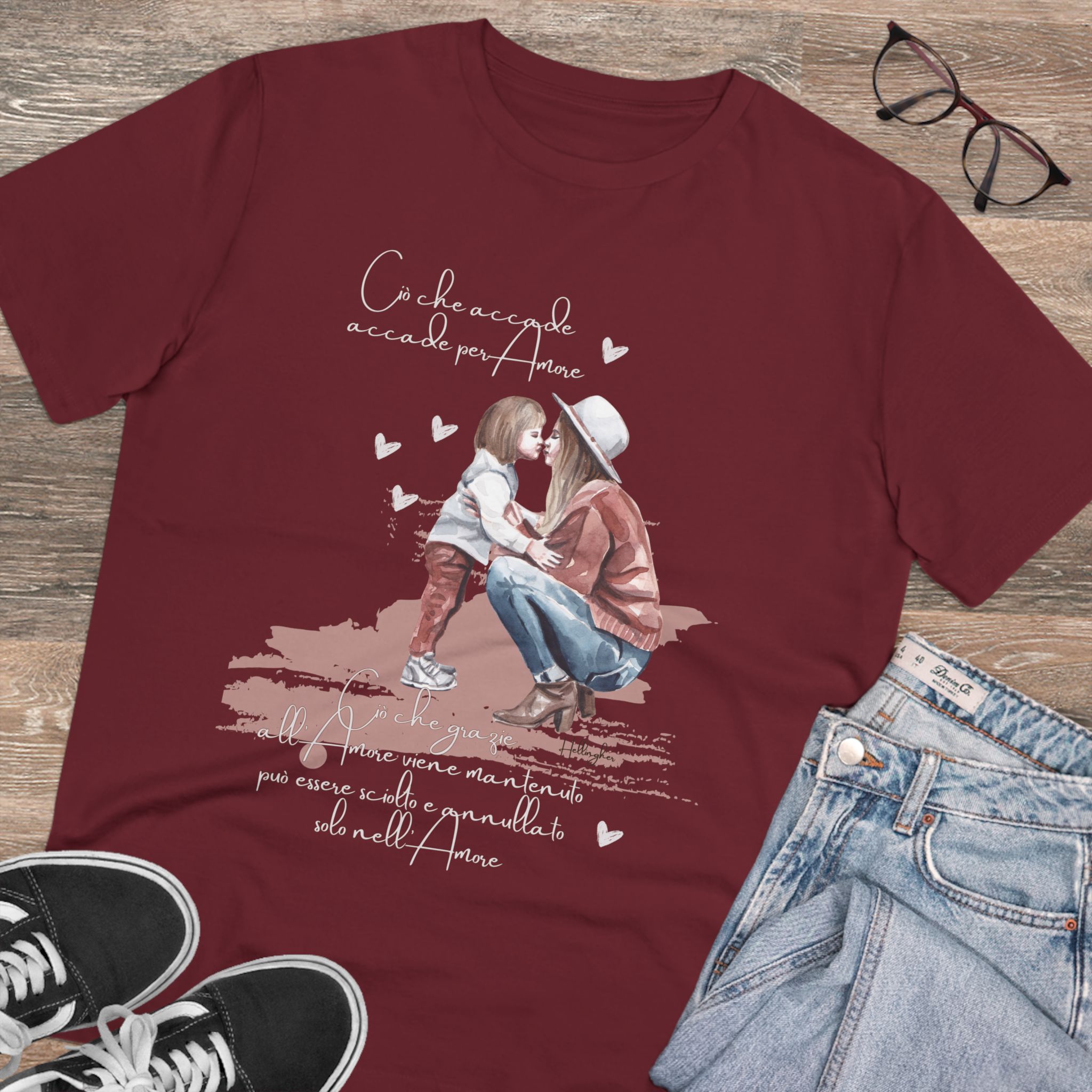 100%cotone, organico,vegan. “Ciò che accade, accade per amore. Ciò che grazie all’amore viene mantenuto può essere sciolto e annullato solo nell’Amore” ispirata alle Costellazioni Familiari di Hellinger.