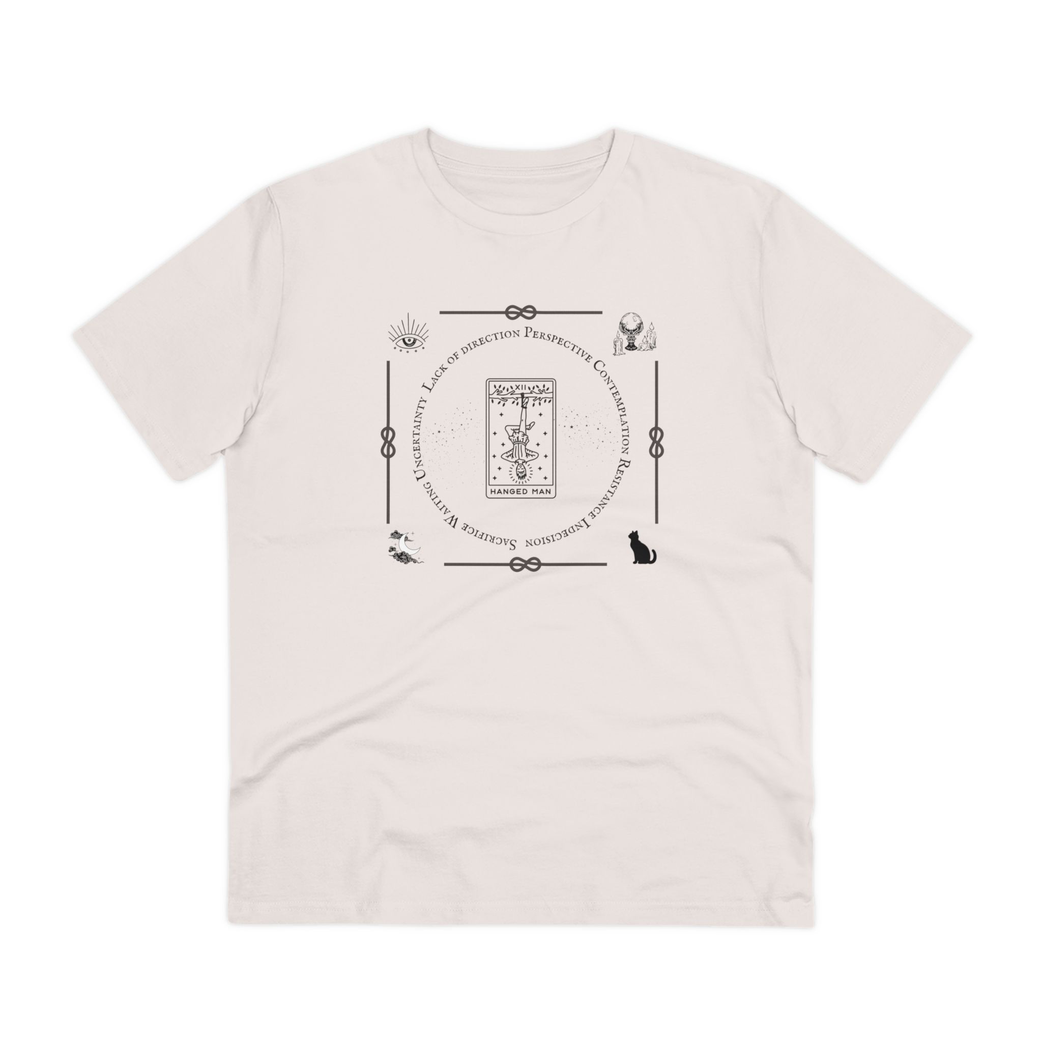 100%cotone, organico,vegan. Scopri la nostra t-shirt ispirata ai tarocchi: un design unico che unisce stile e mistero. Indossa la tua passione per gli Arcani Maggiori e fai una dichiarazione di stile!