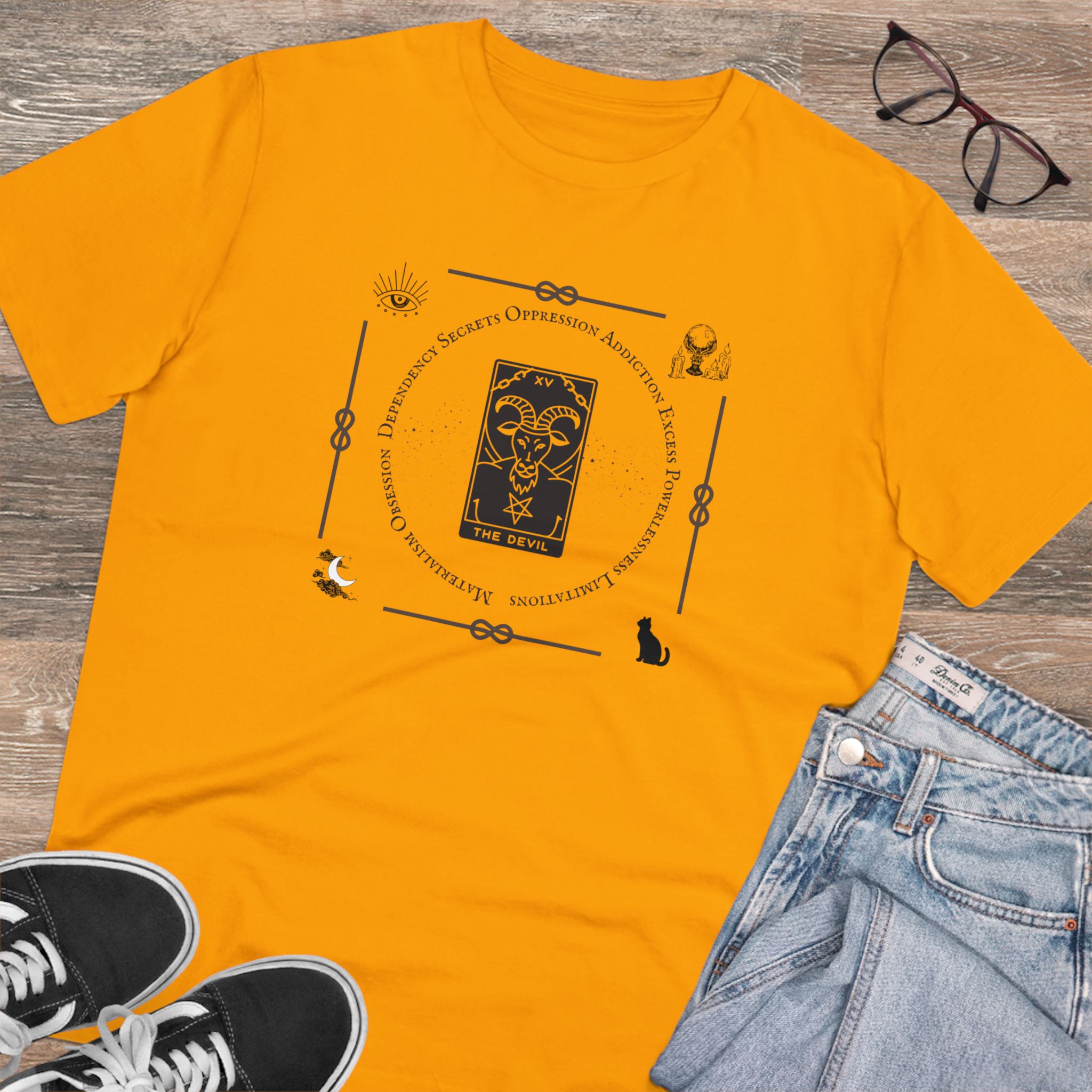 100%cotone, organico,vegan. Scopri la nostra t-shirt ispirata ai tarocchi: un design unico che unisce stile e mistero. Indossa la tua passione per gli Arcani Maggiori e fai una dichiarazione di stile!