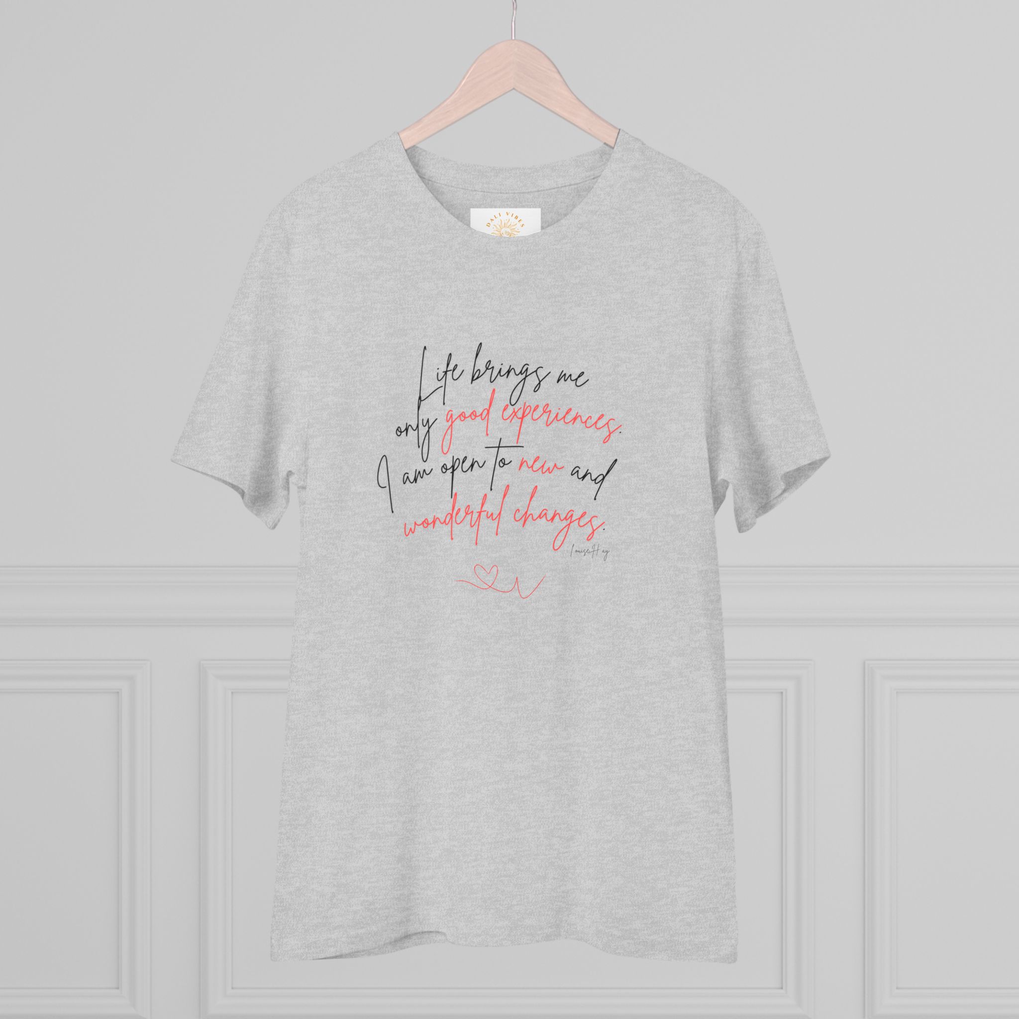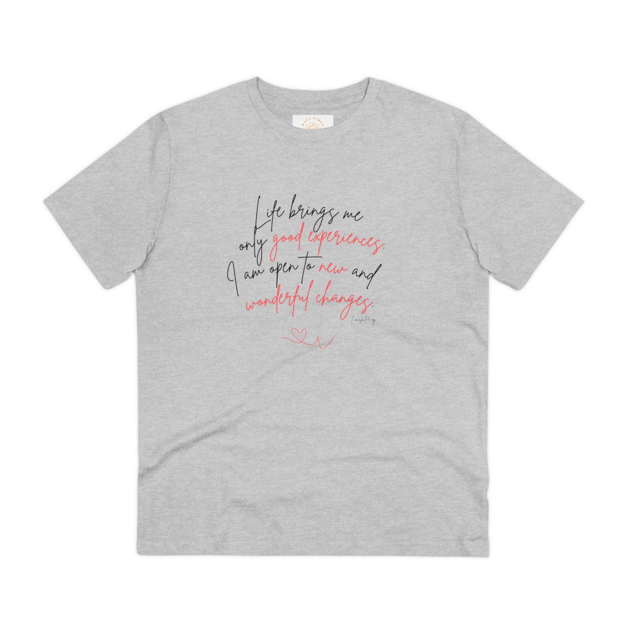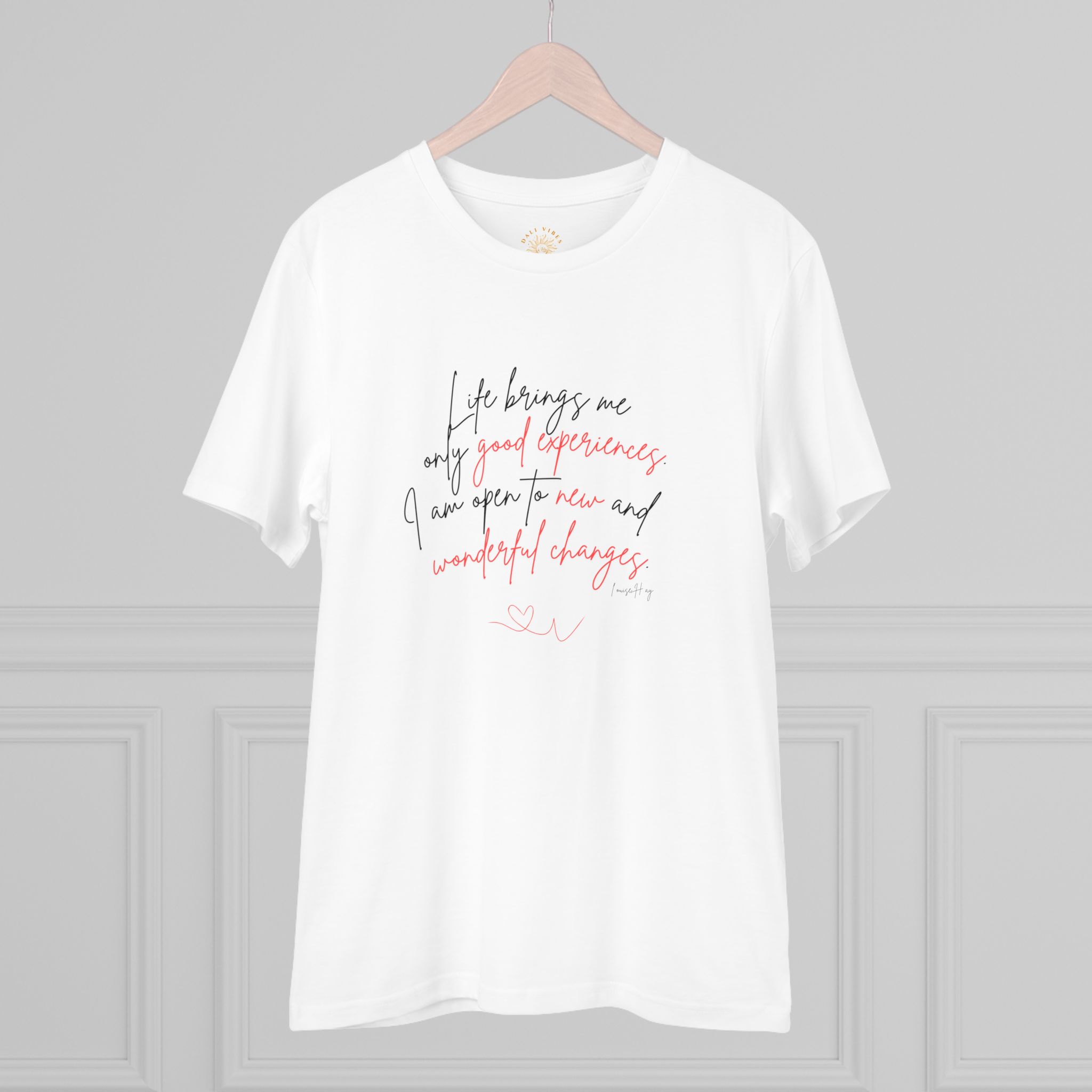 100%cotone, organico, vegan, eco friendly, unisex. Louise Hay “Life brings me only good experiences.I am open to new and wonderful changes” – “La vita mi porta solo esperienze buone.Io sono aperto a cambiamenti nuovi e meravigliosi”