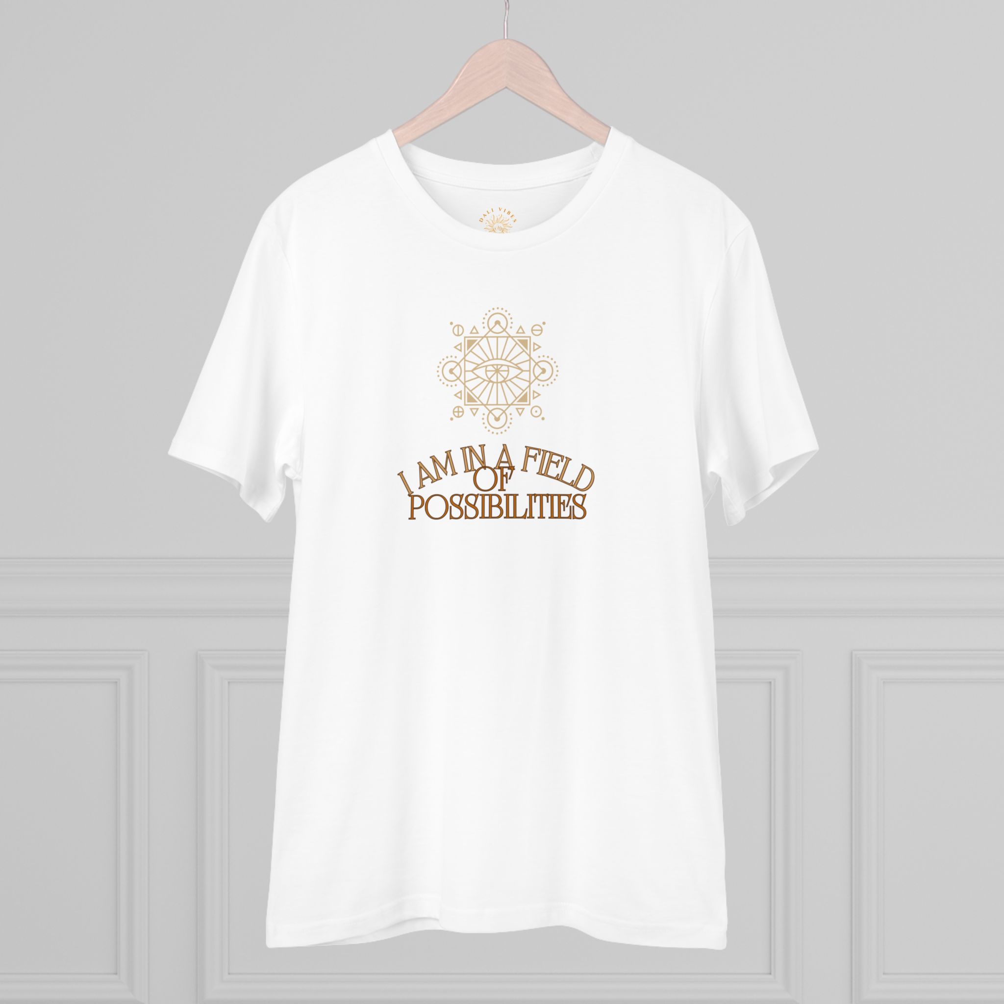 100%cotone, organico, vegan, eco friendly, unisex “Sono in un campo di possibilità”, Joe Dispenza ti esorta ad aprirti a infinite opportunità.