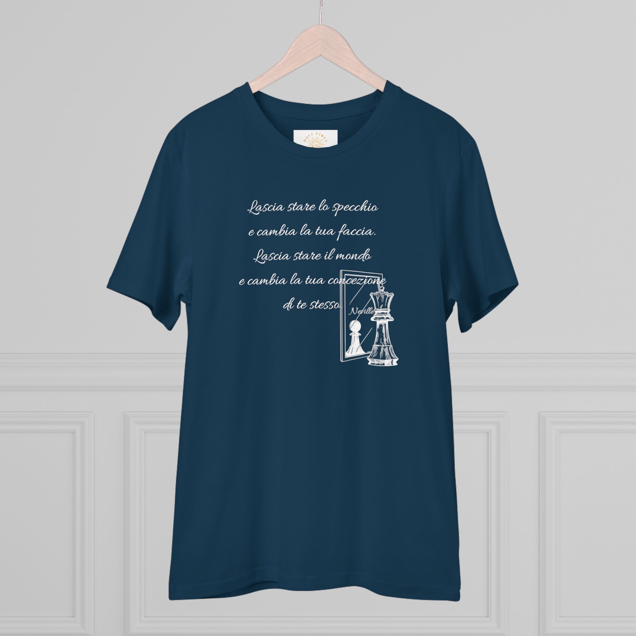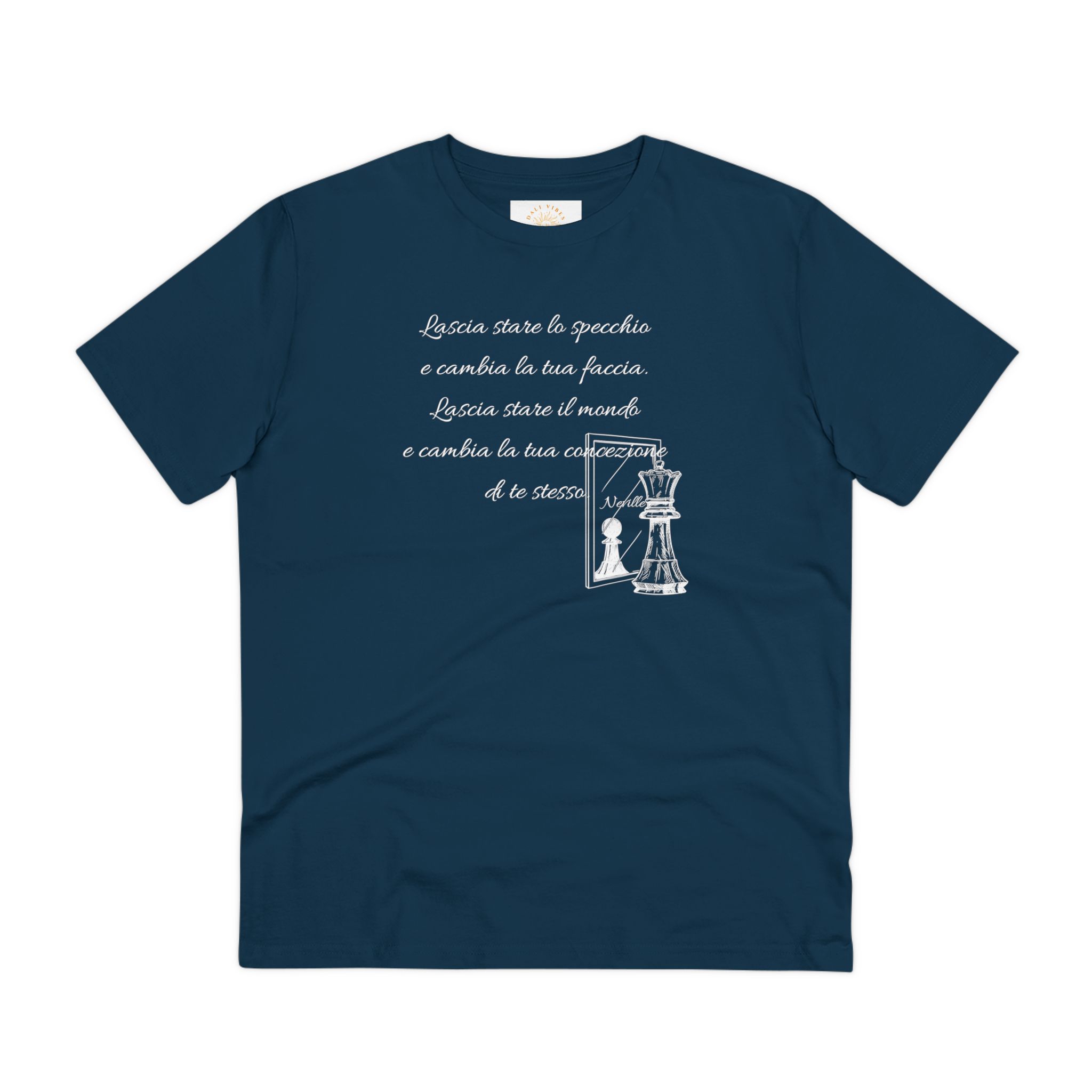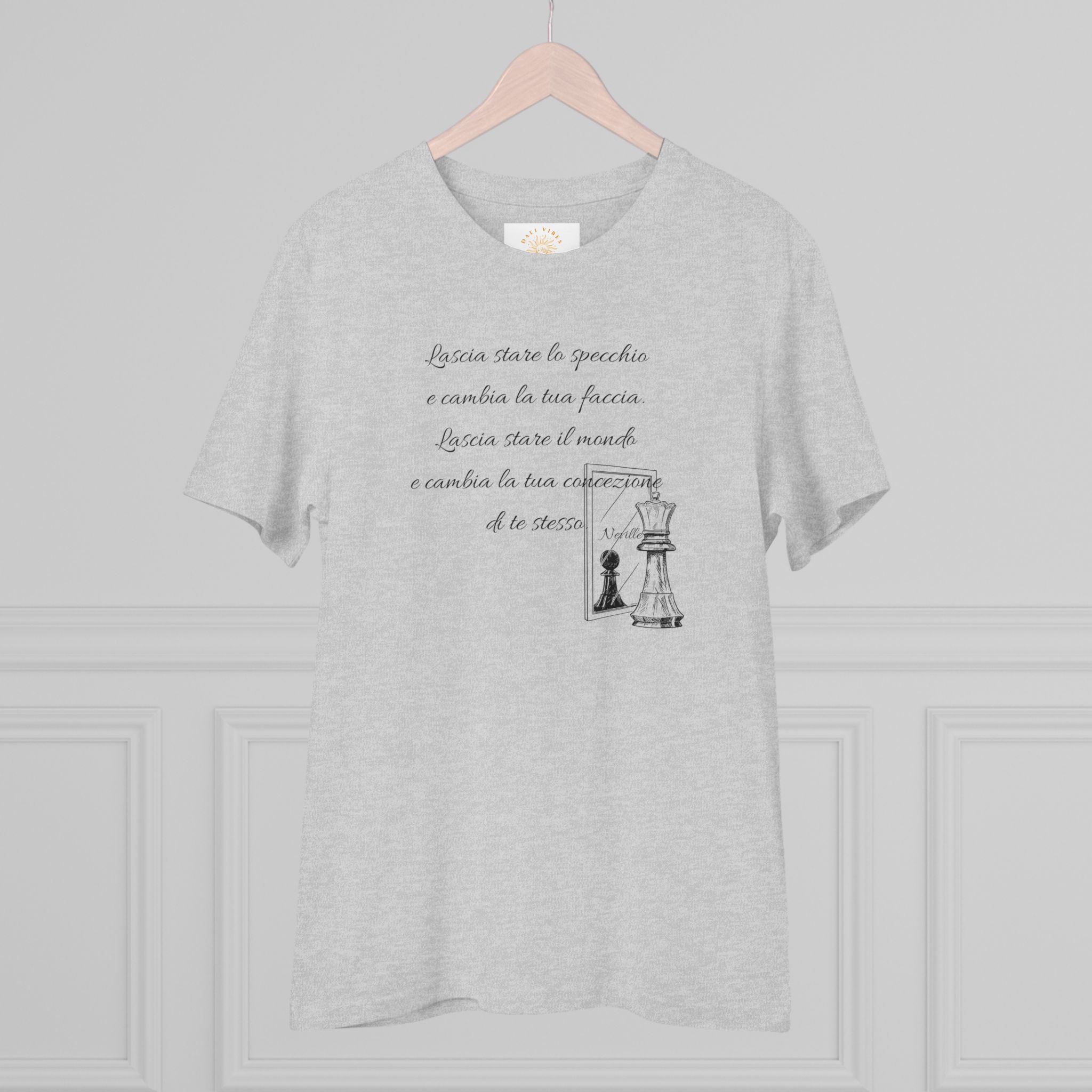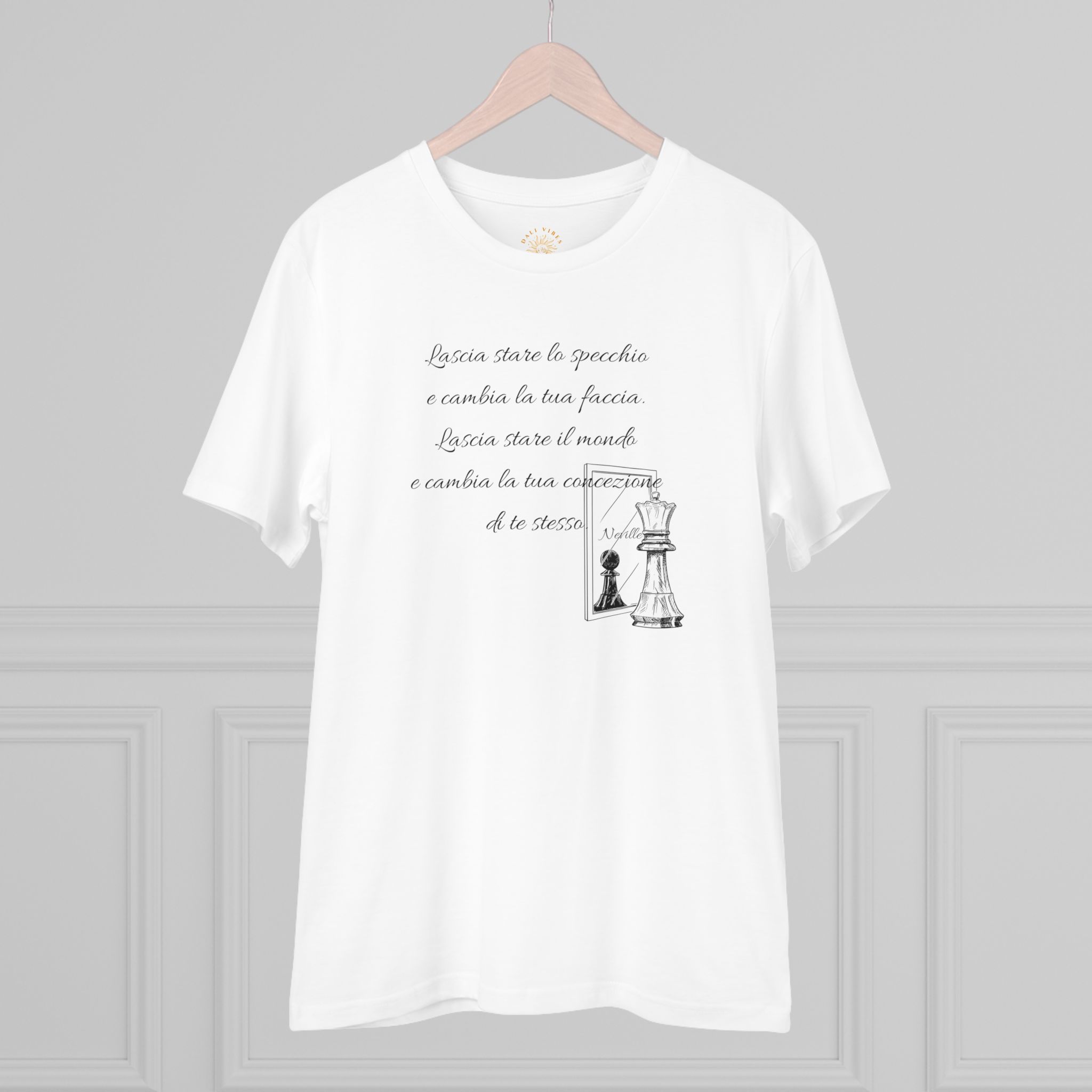100%cotone, organico, vegan, eco friendly, unisex. Neville Goddard ci insegna “Lascia stare lo specchio e cambia la tua faccia. Lascia stare il mondo e cambia la tua concezione di te stesso”