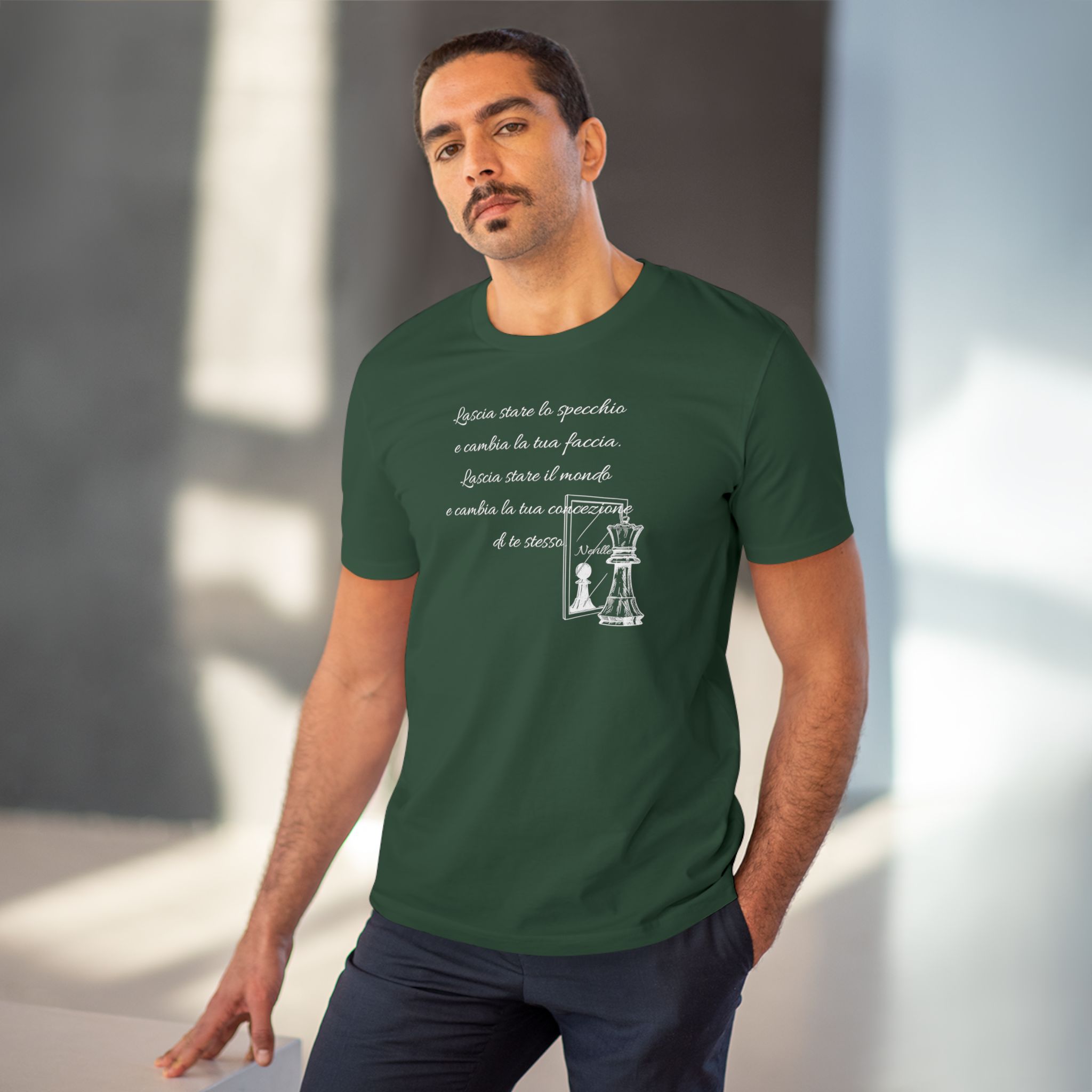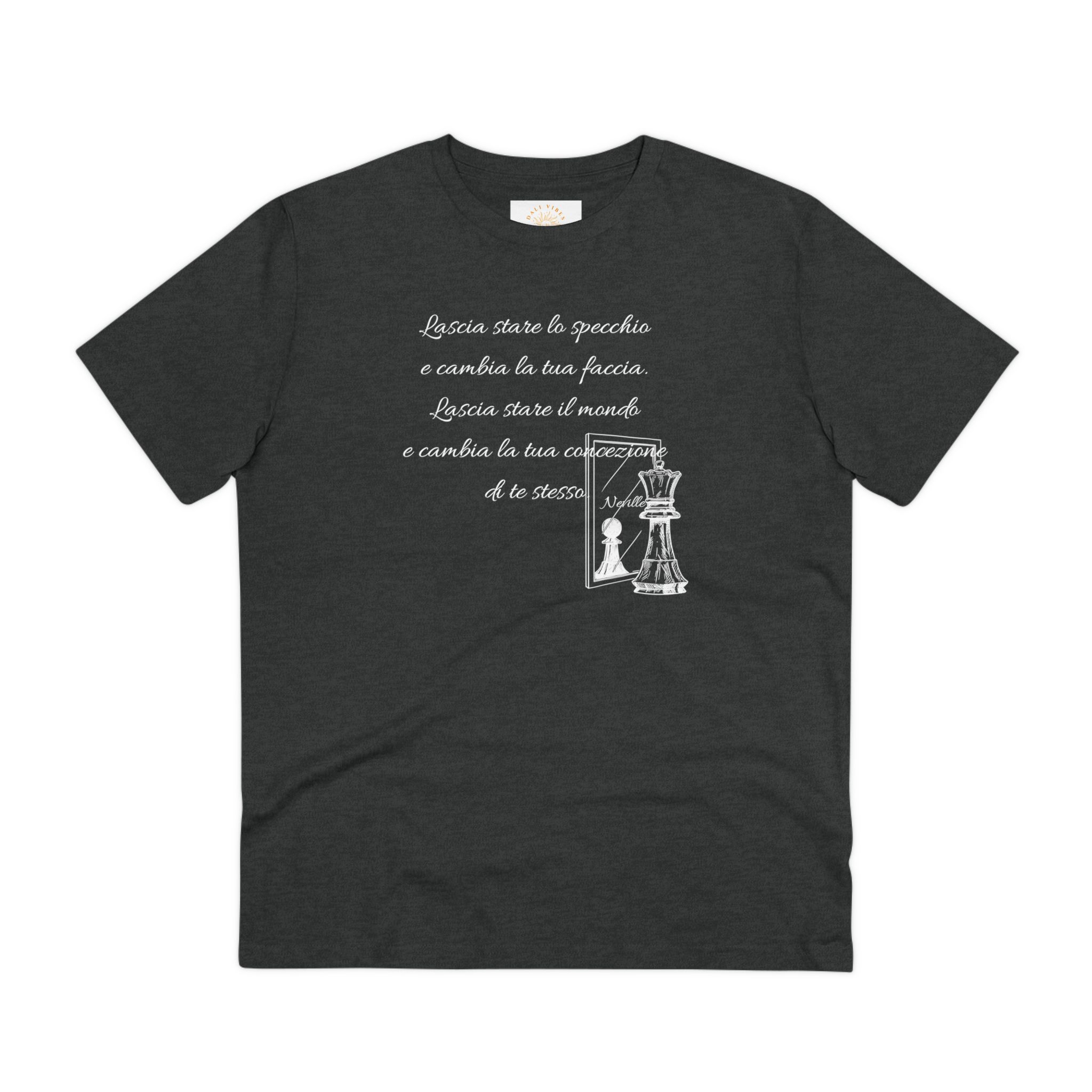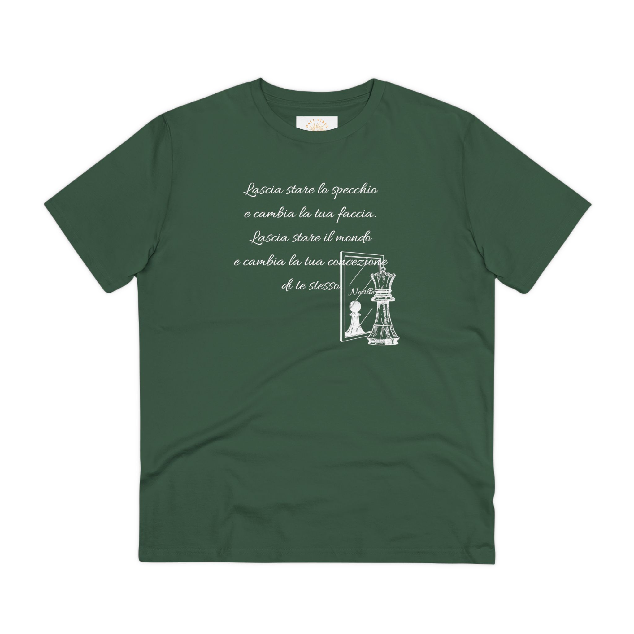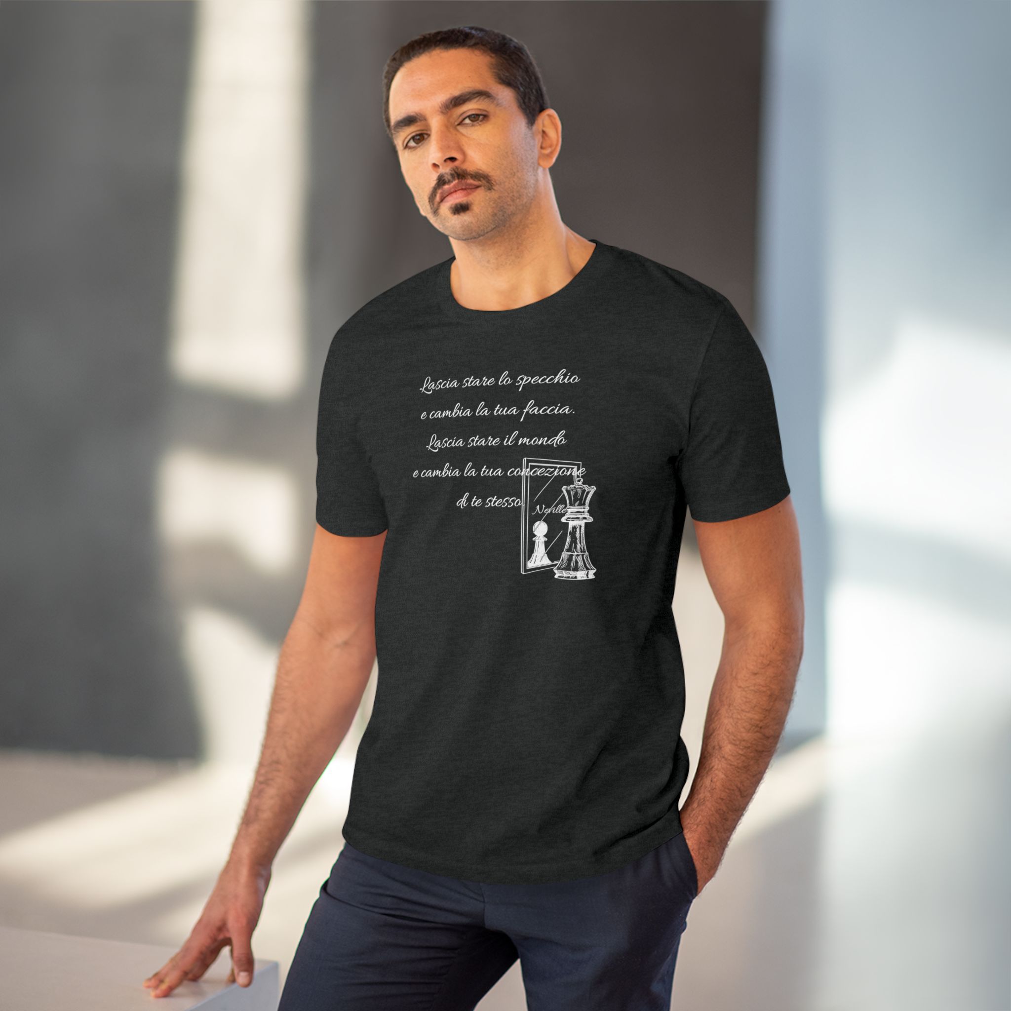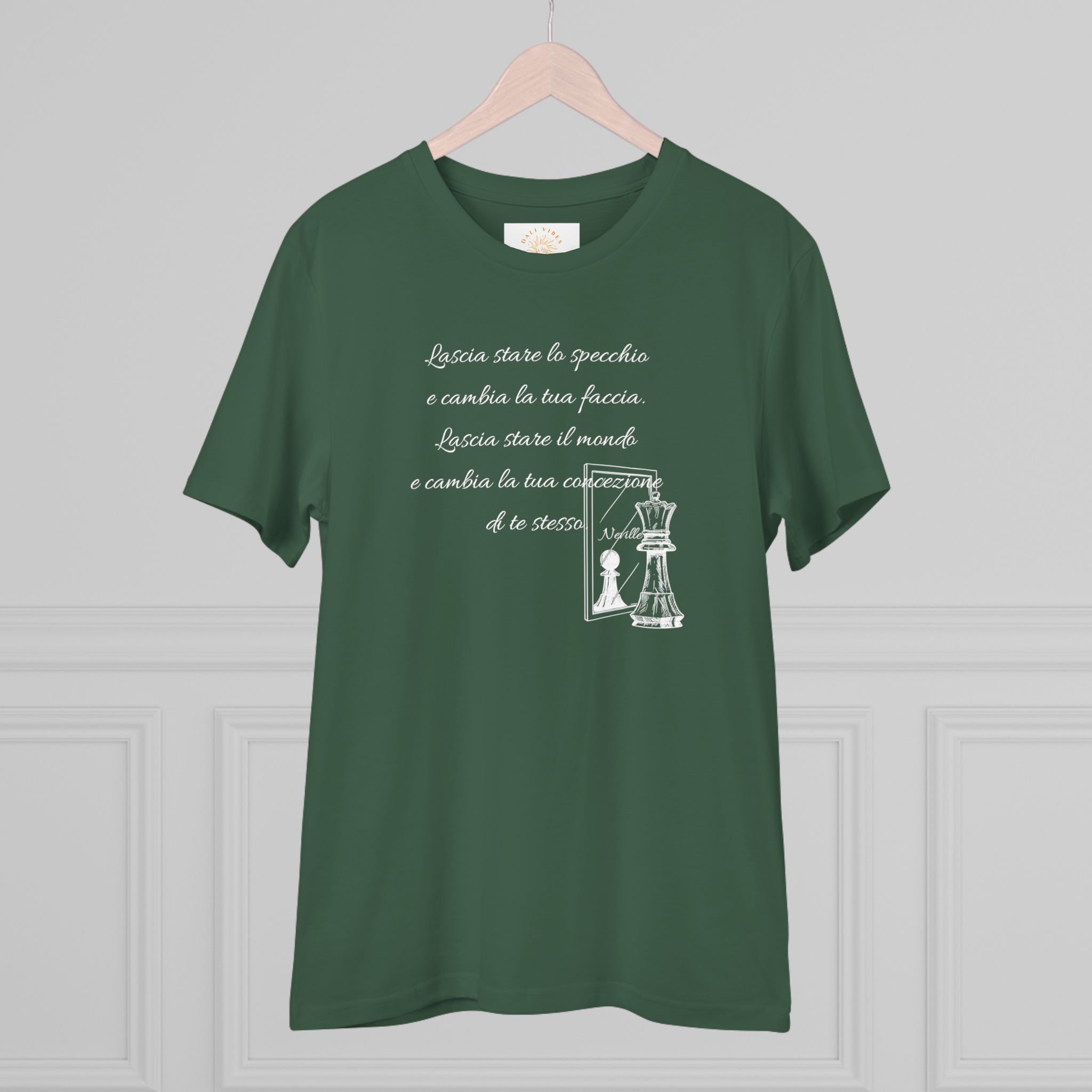 100%cotone, organico, vegan, eco friendly, unisex. Neville Goddard ci insegna “Lascia stare lo specchio e cambia la tua faccia. Lascia stare il mondo e cambia la tua concezione di te stesso”