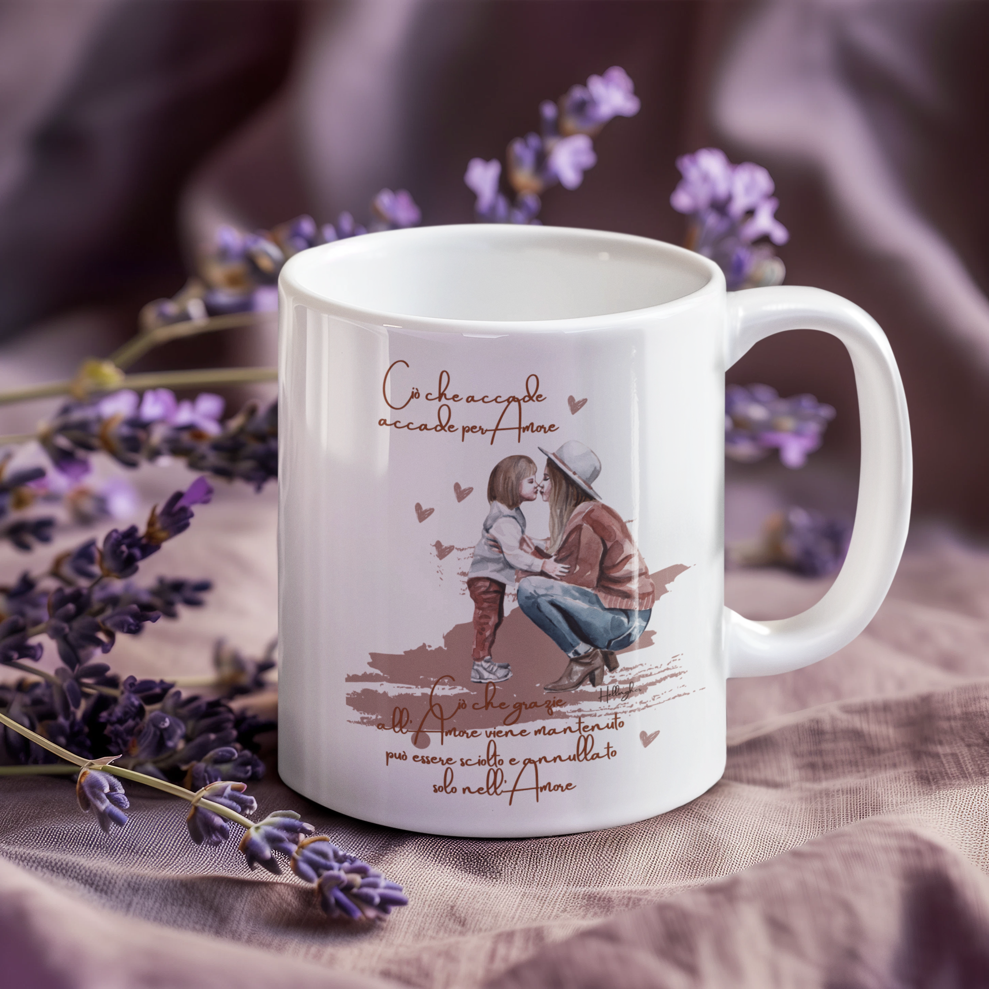 Mug ceramica “Ciò che accade, accade per amore. Ciò che grazie all’amore viene mantenuto può essere sciolto e annullato solo nell’Amore” ispirata alle Costellazioni Familiari di Hellinger.